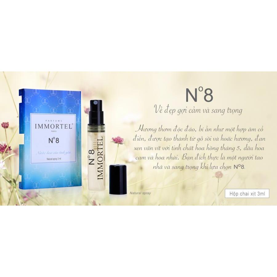 Dung tích 3x3ml/hộpThành phần 100% thiên nhiên; màu sắc có thể thay đổi. * No 8 : Hương thơm độc đáo, bí ẩn như một hợp âm cổ điển, được tạo thành từ gỗ sồi và hoắc hương, đan xen vấn vít với tinh chất hoa hồng tháng 5, dầu hoa cam và hoa nhài.Bạn đích thực là một người tao nhã và sang trọng khi lựa chọn No 8. * No 3 : Lấy cảm hứng từ dòng năng lượng nội sinh, mùi hương mới do IMMORTEL phát minh ra được đặt tên thánh là “No3”. Hương thơm ấm áp và lôi cuốn của gỗ đàn hương cùng với vẻ tinh khiết, bí ẩn của da thuộc này sẽ quyến rũ những chàng trai yêu thích sự phá cách, muốn chinh phục các thử thách và sẵn sàng đương đầu với hiểm nguy. * No 89 : Với lớp hương đầu mùi trái mọng, lớp hương giữa kết hợp tinh tế giữa hoa mộc lan và diên vỹ, tô điểm thêm chút hương gừng và tiêu trắng, tiếp nối bằng những nốt trầm đầy cuốn hút của hoắc hương và hổ phách. Tất cả tạo nên một vẻ đẹp phương đông mềm mại. #nuochoaPhap #IMMORTEL #nuochoanhapkhau #madeinfrance #nuochoacuatinhyeu #nuochoanu #nuochoanam #nuochoa2024 #nuochoasaigon #nuochoaviet #quatangnuochoa #combonuochoa #nuochoaquyenru #nuochoaquyphai #nuochoaxinhdep #scents #nuochoaunisex #nuochoachinhhang #nuochoachiet #nuochoaniche #nuochoateen #reviewnuochoa #nuochoaauth #fragrance #nuochoasaigon #scents #nuochoabeauty #beautyparfumes #nghiennuochoa #nuochoadulich #nuochoamini #yeunuochoa #chamsocbanthan #yeubanthan #chamsoccothe #quatangbangai #quatangnu #quatangme #quatangvo #quatangcongai #quatangcogiao #myphamcaocapGiá sản phẩm trên Tiki đã bao gồm thuế theo luật hiện hành. Bên cạnh đó, tuỳ vào loại sản phẩm, hình thức và địa chỉ giao hàng mà có thể phát sinh thêm chi phí khác như phí vận chuyển, phụ phí hàng cồng kềnh, thuế nhập khẩu (đối với đơn hàng giao từ nước ngoài có giá trị trên 1 triệu đồng).....