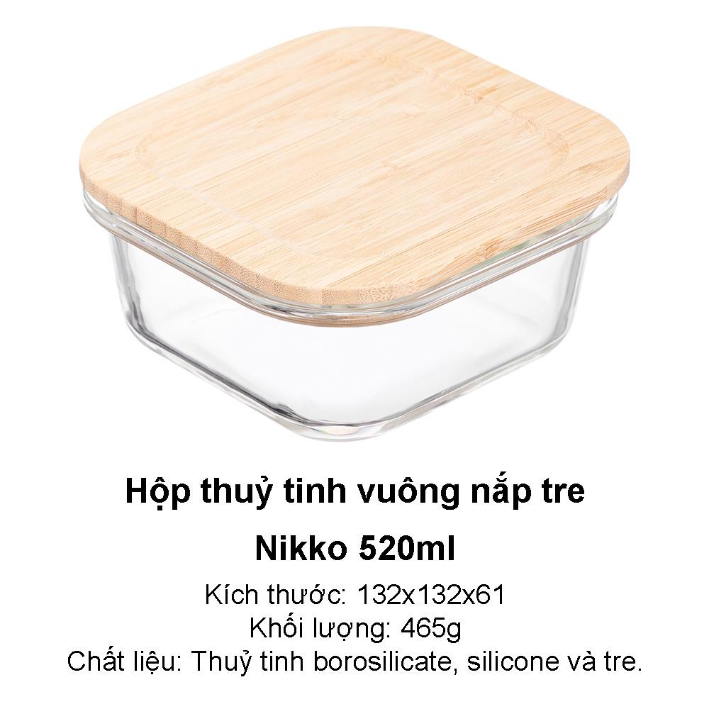 Hộp thủy tinh nắp tre hộp đựng thực phẩm Nikko Inochi