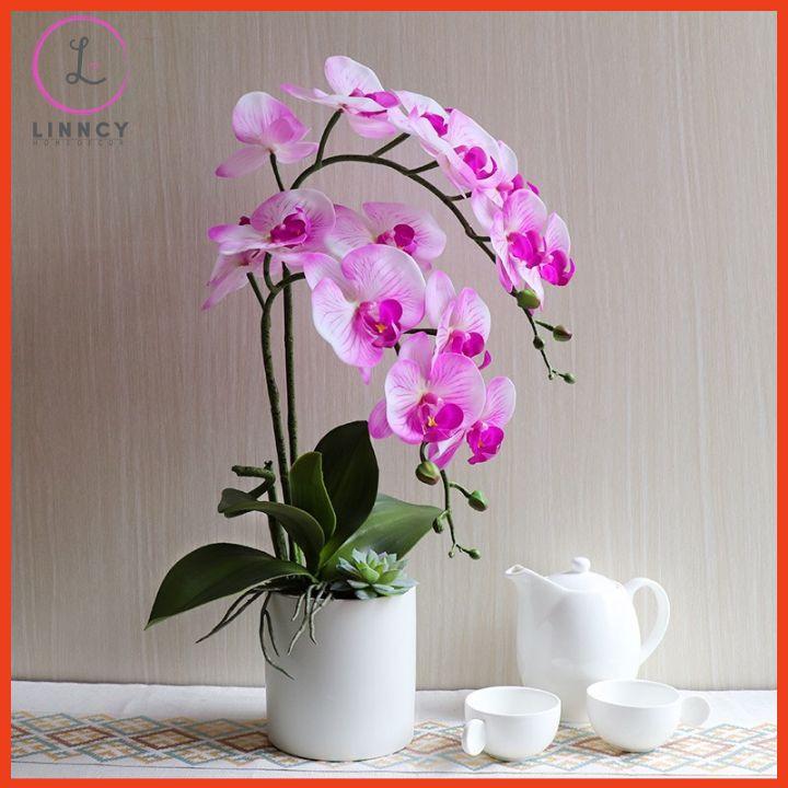 THÔNG TIN SẢN PHẨM: Chậu lan hồ điệp giả 2 nhánh kèm sen đá cao 48cm - Kích thước: cao 48cm( gồm bình và hoa), chiều rộng bình hoa 36cm - Chất liệu: chậu hoa gốm sứ có 2 màu đen và tr...