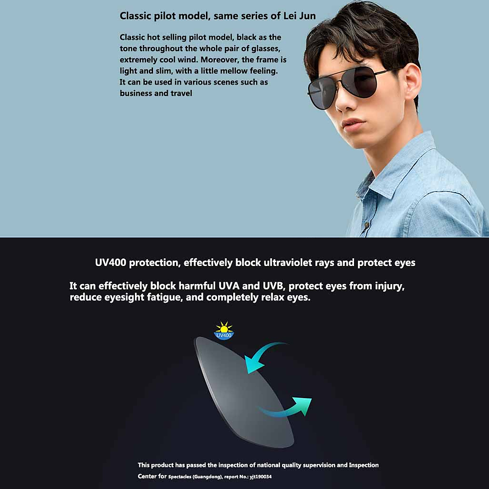 Xiaomi Mijia Pilota Kính râm phân cực chống UV400 cho nam giới và phụ nữ lái xe chung, du lịch, quà tặng