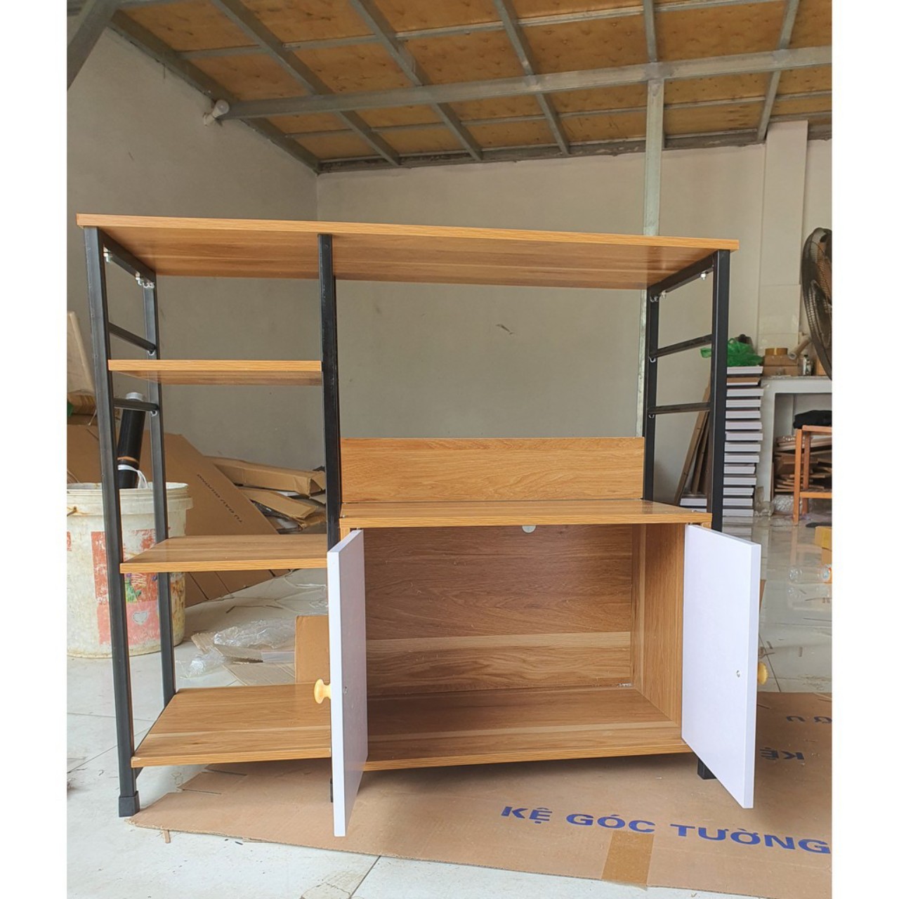 KỆ BẾP - KỆ ĐỂ LÒ VI SÓNG 4 NGĂN KÈM NGĂN KÉOKệ được làm bằng chất liệu sắt hộp sơn tĩnh điện dày dặn, cao cấp, phần nối giữa các thanh là mối hàn và ốc vít siêu chắc chắn - Kệ có 2 tầng và 1 giá 3 tầng, 2 tầng đều có thể dùng để lò vi sóng và 1 ngăn tủ để đồ, 3 giá còn lại là giá sắt và gỗ chắc chắn có thể để bát đĩa, nồi xoong chảo, đồ dùng nhà bếp, lọ gia vị, bình nước, các đồ dùng gia dụng khác …- Kệ dựng thành khung rất chắc chắn và đẹp mắt - Kệ giúp tiết kiệm không gian bếp nhà bạn và giúp bếp trở nên đẹp mắt và gọn gàng hơnKệ lò vi sóng tiết kiệm không gian cho Nhà Bếp. Căn bếp được sắp xếp gọn gàng, thông minh. Giúp nhà bếp của bạn giải phóng không gian lưu trữ bằng cách sắp xếp các vật dụng, đồ đạc trong bếp có tổ chức.Kích thước sản phẩm: 78*30*70cmKích thước đóng gói: 88*38*15cmChất liệu: sắt + gỗTrọng lượng : khoảng 12kgMầu sắc: vân gỗXuất sứ: Việt Nam#kelovisong #kebep#kededo#kedanang#lovisong#freeship#mienshipGiá sản phẩm trên Tiki đã bao gồm thuế theo luật hiện hành. Bên cạnh đó, tuỳ vào loại sản phẩm, hình thức và địa chỉ giao hàng mà có thể phát sinh thêm chi phí khác như phí vận chuyển, phụ phí hàng cồng kềnh, thuế nhập khẩu (đối với đơn hàng giao từ nước ngoài có giá trị trên 1 triệu đồng).....