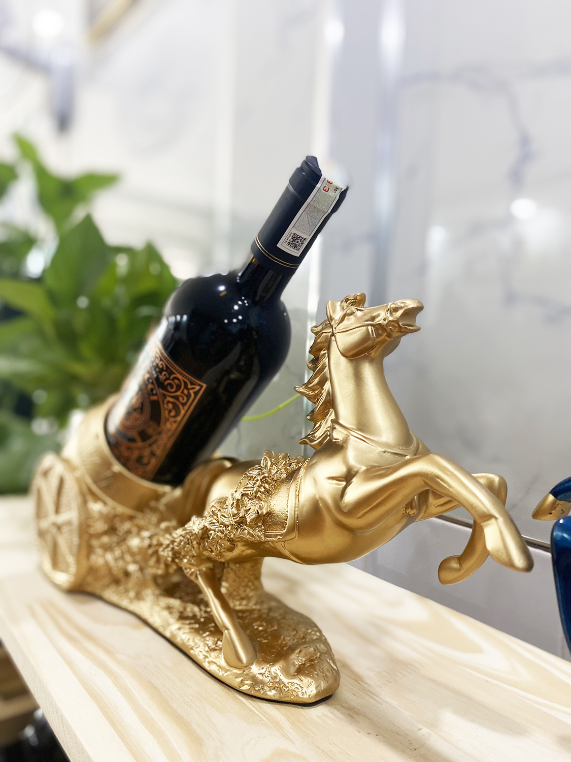 Thông tin chung về kệ rượu vang hình ngựa kéo "Mã Đạo Thành Công"- Kích thước sản phẩm: Cao 27cm x Dài 48cm- Màu sắc: Vàng gold- Khối lượng: 2 kg- Lắp đặt: Đứng- Phong cách: cổ điển- Chất liệu: ...