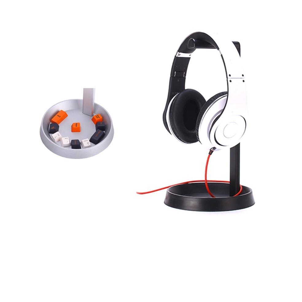 Kệ treo tai nghe chụp đầu bằng khung kim loại, đế kê nhựa kết hợp đế đựng đồ tiện dụng