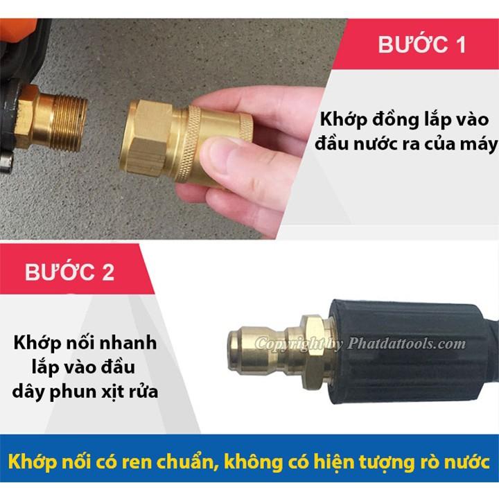 Khớp nối nhanh đầu nước ra máy xịt rửa áp lực cao, máy rửa xe Nếu việc trước đây để tháo lắp dây phun xịt áp lực cao với máy vô cùng khó khăn, bất tiện. Bạn muốn di chuyển linh hoạt hoặc...