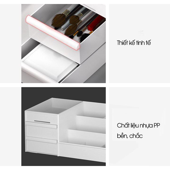 kệ mỹ phẩm để bàn, hộp đựng đồ trang điểm makeup bằng nhựa cao cấp 3 tầng 2 ngăn kéo Đặc điểm nổi bật: - Vật liệu nhựa cao cấp; an toàn; siêu bền - với 3 tầng 2 ngăn kéo tiện dụng...