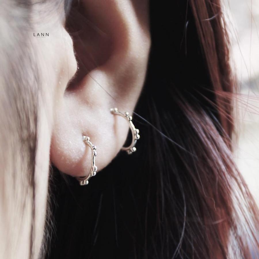 Khuyên đường tròn hai hạt đính cách S925 LANN