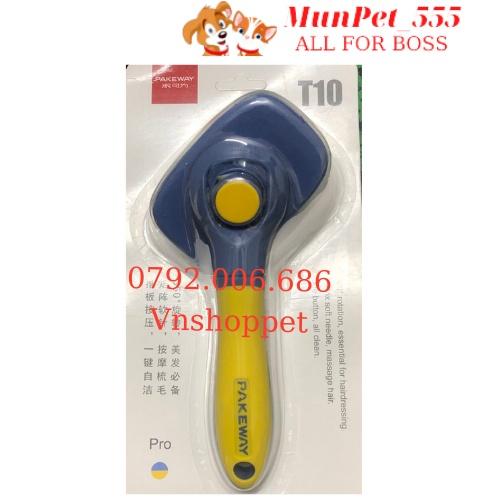 Lược chải lông chó mèo T10 Pake Way nút bấm lấy lông dễ dàng đầu lược xoay 360