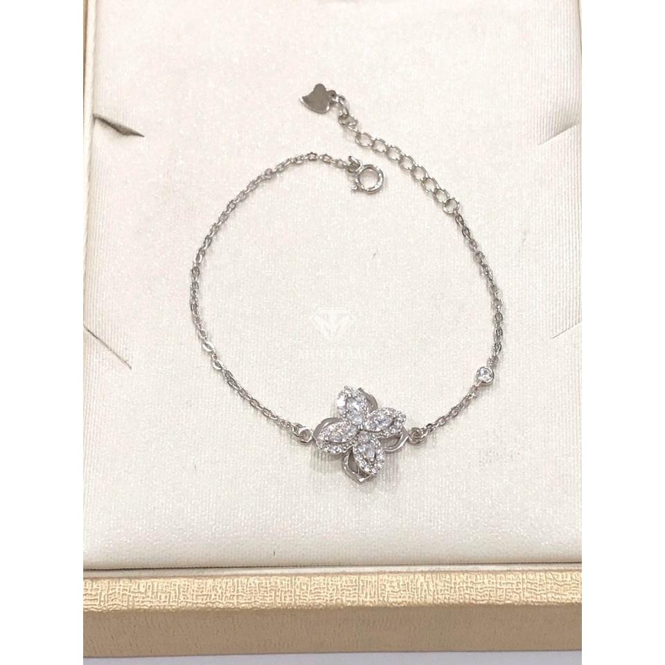 Lắc tay cỏ bốn lá mặt xoay bạc 925,Lắc tay nữ cỏ 4 lá mặt xoay bạc 925 xi kim cao cấp-Minh Tâm Jewelry