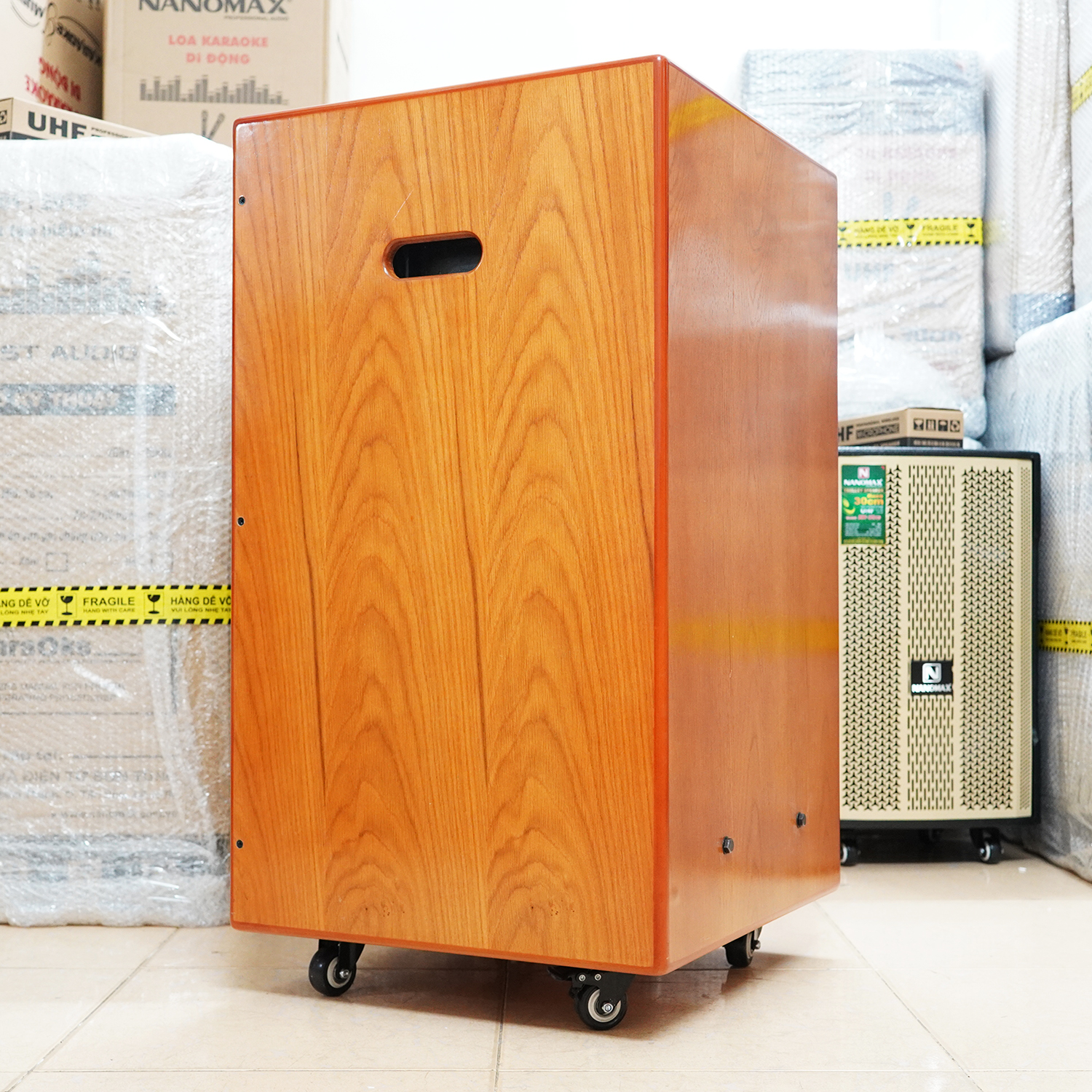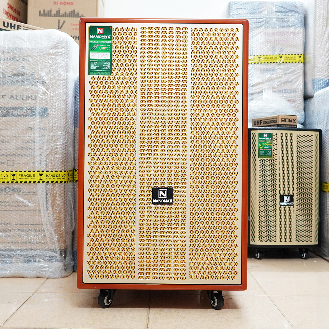 Loa kéo Nanomax SK-18G8 là dòng loa karaoke công nghệ tiên tiến nhất 2022 có Bass 5 tấc 50cm, công suất 1200w, sở hữu 3 đường tiếng với chiều cao lên đến 89cm. Nanomax SK-18G8 thực sự là mẫu loa kẹo kéo đẳng cấp, đốn hạ tất cả đối thủ, sở hữu những công nghệ thực sự vượt trội và ưu việt mà bất kì người chơi nào cũng mơ ước. THÔNG SỐ KỸ THUẬT LOA KẸO KÉO NANOMAX SK-18G8 : • Loại: Karaoke di động • Số đường tiếng: 03• Công suất: 1200W• Thời gian sạc: 7 tiếng• Thời gian dùng: 4-7 tiếng• Loa Bass: 50cm• Loa Mid: 16cm• Loa Treble: Treble còi• Kết nối không dây: Bluetooth 5.0• Micro: Không dây band tần UHF• Tiện ích: Cổng USB, thẻ nhớ, mic có dây 6.5 x2; Jack guitar 6.5, Audio In/Output 3.5• Kích thước/ Trọng lượng: (50.5 x 53 x 89)cm / 46kg• Chất liệu thùng: Gỗ sơn gai chống trầy • Sản xuất tại: Việt Nam• Thương hiệu: Nanomax• Sử dụng nguồn: AC 220V hoặc Ắc qui 12V/20A• Phụ kiện: 1 dây sạc, 2 micro, 4 pin và 1 hướng dẫn ĐIỂM NỔI BẬT CỦA LOA KARAOKE NANOMAX SK-18G8 : Nanomax SK-18G8 là con loa kéo Bass 50cm (5 tấc) duy nhất sở hữu tính năng Reverb cho mic giúp tạo hiệu ứng giọng hát hay, cho giọng hát nhẹ nhàng mượt mà thanh thoát hơn. Trên thị trường gần như không có dòng loa karaoke 5 tấc nào sử dụng tính năng này, nếu có thì cũng không nhất định nổi bật. Loa karaoke Nanomax SK-18G8 sử dụng công nghệ Class D HIỆU SUẤT CAO cho âm thanh luôn ổn định dù ở công suất lớn. Đa số các loại loa kéo khi mở lớn sẽ bị bể tiếng, nhưng SK-18G8 đã giải quyết gọn gàng vấn đề đó, giúp bạn giữ lâu cuộc vui. Micro của Nanomax SK-18G8 hát siêu nhẹ siêu khỏe, cùng khả năng chống hú siêu hạng dù ở khoảng cách rất gần loa. Nam Hoàng Audio đã test rất nhiều lần, thậm chí để độ nhạy mic 06 gần tối đa và ngồi ngay cạnh loa nhưng không bị hú. Các dòng loa kéo công suất lớn có nhược điểm là lượng tiêu thụ điện lớn nên thời gian sử dụng pin ngắn, nhưng nay Nanomax SK-18G8 đã giải quyết được vấn đề đó. Ở mức âm lượng trung đến cao, bạn có thể duy trì thời gian sử dụng lên tới 7 tiếng, giúp kéo dài cuộc vui. Cuối cùng, loa kẹo kéo Nanomax SK-18G8 có ngoại hình hầm hố 51x53x89cm thực sự rất lớn ngang con loa 6 tấc, loa Bass đập khỏe mạnh, khi cần có thể chỉnh thành chất âm ấm; loa Treble vang xa, kết hợp loa Mid tạo ra âm thanh có chất lượng vượt trội, đi rất xa, nên chỉ những không gian rộng thoáng mới đủ để em nó thể hiện bản lĩnh của mình. ️CHẾ ĐỘ BẢO HÀNH• 1 đổi 1 lỗi sản xuất• Loa Bass và mạch 12 tháng; mic và ắc quy 6 tháng ️GIỜ LÀM VIỆC️ Tất cả ngày từ 7h30 đến 21h (trừ lễ).️ Follow shop để được áp mã giảm giá khách hàng thân thiết. ️ CAM KẾT CỦA NAM HOÀNG AUDIO• Sản phẩm chính hãng Nanomax • Luôn test kỹ trước khi đóng gói và vận chuyển• Tư vấn / Hướng dẫn suốt quá trình dùng ️ LƯU Ý NHẬN HÀNG ️ Các đơn hàng không hỗ trợ đồng kiểm, sau khi nhận hàng vui lòng quay video lúc mở để đối chiếu và xử lý một cách tốt nhất. #nanomax #loakaraoke #loakeo #loakeokeo #loakeobass50cm #loakeocongsuatlon #loakaraokedidong #loakeodidongGiá sản phẩm trên Tiki đã bao gồm thuế theo luật hiện hành. Bên cạnh đó, tuỳ vào loại sản phẩm, hình thức và địa chỉ giao hàng mà có thể phát sinh thêm chi phí khác như phí vận chuyển, phụ phí hàng cồng kềnh, thuế nhập khẩu (đối với đơn hàng giao từ nước ngoài có giá trị trên 1 triệu đồng).....