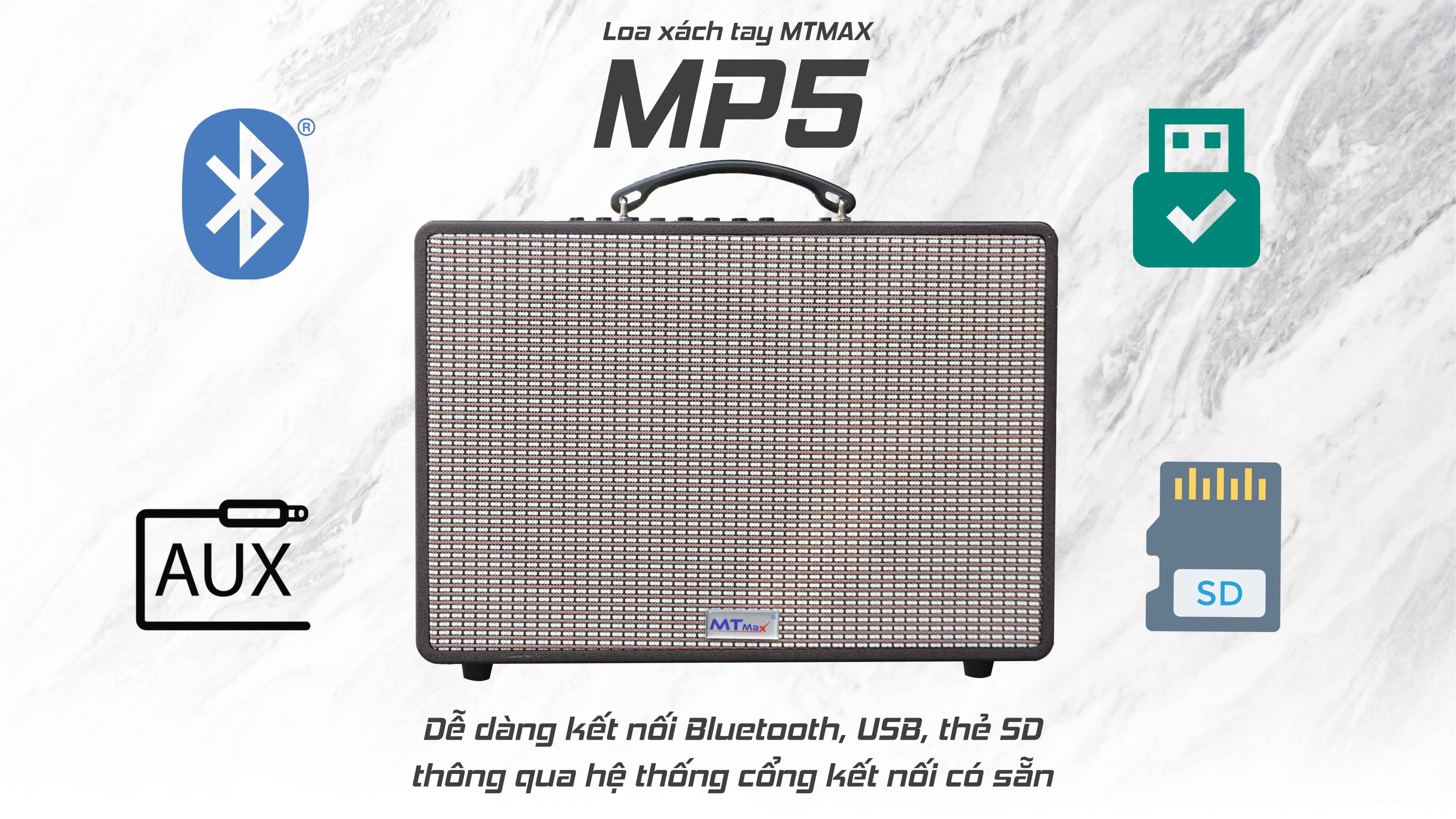 Loa kéo xách tay MTMAX MP5 du lịch ngoại hình sang trọng 3 đường tiếng đầy đủ Echo, Delay, Reverb tặng kèm 2 micro hàng chính hãng