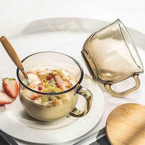 Ly Thuỷ Tinh Màu Hổ Phách Chịu Nhiệt Có Quai Cầm Dung Tích Lớn 480ml Tiện Dụng Cao Cấp