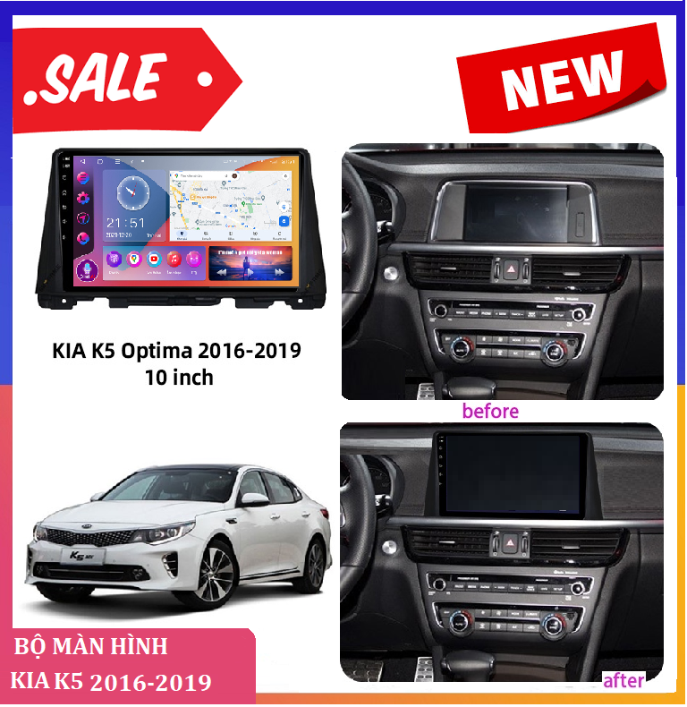Màn hình DVD android A.5 lắp sim 4G thu phát wifi,XE KIA K5 2016-2019 gồm mặt dưỡng+jack nguồn theo xe .KÍNH CƯỜNG LỰC 2.5 D,tặng pm V.I.E.T.M.A.P.S.1 chỉ đường tiện ích, màn hình ô tô cho các dòng xe