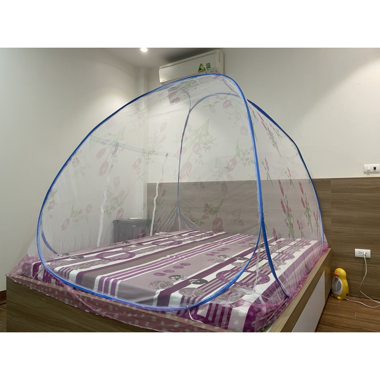 Mùng Chụp/Màn Chụp Tự Bung Không Đáy Chống Muỗi Cao Cấp (Sản Xuất 100% Tại Việt Nam) THIẾT KẾ THÔNG MINH: Mùng dễ dàng tự bung ra bằng thao tác nhẹ nhàng, gấp gọn tiện lợi, không chiếm không gian. CHẤT LIỆU:Mùng sử dụng khung thép chắc chắn giúp mùng tự đứng vững khi sử dụng, đồng thời khung thép cũng có độ đàn hồi cao làm mùng tự bung khi mở và uốn tròn khi xếp.Vải tuyn cao cấp, dày, bền, thoáng, mắt mùng nhỏ, không lo muỗi đến gần cơ thể khi ngủ. TIỆN ÍCH:Các góc mùng đều có dây chun cố định mùng vào nệm hoặc chiếu. Màn có cửa và cửa có 2 khóa (cả bên trong lẫn bên ngoài) giúp bạn dễ dàng và tiện lợi sử dụng. Màu sắc nhẹ nhàng, trang nhã, phù hợp với mọi không gian ngủ.Đặc biệt, tiện ích cho những không gian nhỏ hẹp như nhà trọ, phòng ngủ nhỏ, nhà thường xuyên có khách để sử dụng và gấp gọn tiện lợi.Sử dụng để mang đi du lịch, dã ngoại để tránh muỗi, côn trùn cắn.Không phải đóng đinh vào tường gây mất thẩm mỹ ngôi nhà của bạn.LƯU Ý: MÀU SẮC, ĐỘ SẮC NÉT, ĐỘ BÓNG TRONG HÌNH ẢNH CÓ THỂ SAI KHÁC ĐÔI CHÚT SO VỚI HÌNH ẢNH THỰC TẾ DO HIỆU ỨNG ÁNH SÁNG KHI CHỤP ẢNH, QUÁ TRÌNH TÁCH NỀN VÀ HIỆU ỨNG TỪ CAMERA. MONG QUÝ KHÁCH THẤU HIỂU (Mùng Chụp) Màn Chụp Tự Bung Không Đáy Chống Muỗi Cao Cấp (Sản Xuất 100% Tại Việt Nam) Vải tuyn mềm, mịn, bền chắc đảm bảo chất lượng tuyệt đối. Sản phẩm với màu sắc bao bì bắt mắt và đáng yêu. Giá sản phẩm trên Tiki đã bao gồm thuế theo luật hiện hành. Bên cạnh đó, tuỳ vào loại sản phẩm, hình thức và địa chỉ giao hàng mà có thể phát sinh thêm chi phí khác như phí vận chuyển, phụ phí hàng cồng kềnh, thuế nhập khẩu (đối với đơn hàng giao từ nước ngoài có giá trị trên 1 triệu đồng).....