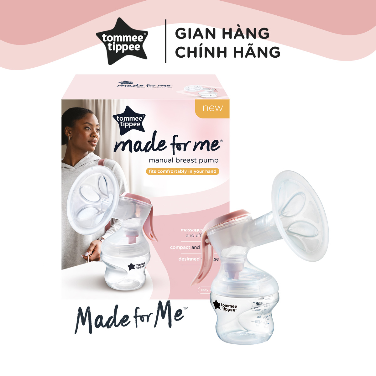 Máy hút sữa bằng tay Tommee Tippee Made for Me Thương hiệu: Tommee Tippee – Anh Quốc Mã sản phẩm: 223250 Dựa trên nghiên cứu Người tiêu dùng tại Mỹ vào năm 2021, Sự tiện lợi của máy hút sữa Tommee Tippee được người tiêu dùng chấm điểm cao nhất so với các thương hiệu máy hút sữa khác. Cũng theo nghiên cứu, Phễu hút máy hút sữa Tommee Tippee tăng dòng chảy sữa nhiều hơn so với các thương hiệu máy hút sữa khác trên thị trường Mỹ. Hút sữa theo cách của bạn với máy hút sữa bằng tay Tommee Tippee nhỏ gọn, kín đáo và dễ sử dụng. Thiết kế mới hiệu quả, vừa vặn thoải mái với bàn tay của bạn và không đòi hỏi nhiều lực để bơm, nhờ đó bạn có thể dễ dàng hút sữa hiệu quả mà không bị mỏi tay. Một vài mẹ cảm thấy khó khăn khi sử dụng máy hút sữa bằng tay vì việc bóp liên tục có thể làm cho tay mỏi. Tommee Tippee hiểu được điều đó và thiết kế một chiếc máy hút sữa bằng tay nhỏ gọn, kích cỡ hoàn hảo với bàn tay của các bà mẹ. Nó không chỉ thoải mái khi cầm mà còn đòi hỏi ít sức lực hơn khi bơm. Nhờ đó, dụng cụ hút sữa này đặc biệt hiệu quả mà không làm bạn mệt. Máy hút sữa bằng tay Tommee Tippee tinh tế vượt bậc Hoạt động êm ái và nhỏ gọn để cất giữ trong chiếc túi xách của bạn, máy hút sữa bằng tay rất linh hoạt giúp bạn có thể hút sữa bất cứ khi nào bạn muốn, lý tưởng khi sử dụng tại nhà, nơi làm việc hay khi bạn đi ra ngoài và đi du lịch. Máy hút sữa bằng tay thuộc dòng sản phẩm Tommee Tippee Made for Me, gồm các sản phẩm cho bé bú đa dạng, được thiết kế để hỗ trợ chặng đường chăm sóc bé từ sơ sinh bằng việc giúp cho các mẹ có thể cho bé bú ở bất kỳ nơi đâu và bất cứ lúc nào, giữ cho các mẹ luôn được thoải mái và tự tin vượt qua các thử thách làm mẹ tuyệt vời! Các dòng máy hút sữa của Tommee Tippee hiện đại và rất chất Đặc điểm máy hút sữa bằng tay Tommee Tippee Made for Me: Máy hút sữa bằng tay là dụng cụ hút sữa có rất nhiều ưu điểm vượt trội so với các loại máy hút sữa hiện nay trên thị trường. THIẾT KẾ VỪA VỚI BÀN TAY CỦA MẸ: phần cổ thon và phần cần bơm uốn cong được thiết kế dành riêng cho bàn tay của các bà mẹ, các mẹ không mất nhiều sức để sử dụng máy và giúp cho bàn tay không bị căng mỏi. Thiết kế dành riêng cho bàn tay của mẹ PHỄU SILICON KÍCH SỮA, HÚT SỮA ÊM ÁI: Phễu hút được thiết kế nguyên khối, tích hợp các vùng đệm silicon êm ái. Viền phễu silicon giúp việc áp phễu vào ngực mẹ không bị đau, hằn viền sâu, mềm mại ôm trọn bầu ngực mẹ khi hút sữa. Các chi tiết cánh hoa bằng silicon cực kỳ mềm mại mát xa, giúp kích sữa và hút một cách thông minh, được nhiều sữa hơn trong thời gian ngắn hơn. Dựa trên nghiên cứu Người tiêu dùng tại Mỹ vào năm 2022, phễu hút máy hút sữa Tommee Tippee tăng dòng chảy sữa nhiều hơn so với các thương hiệu máy hút sữa khác trên thị trường Mỹ. KHÔNG TIẾNG ĐỘNG, NHỎ GỌN, KÍN ĐÁO Thiết kế nhỏ gọn để bạn có thể để trong giỏ xách và mang theo đi bất cứ nơi đâu. Dụng cụ hoạt động êm không gây ồn giúp bạn có thể sử dụng kín đáo ở mọi nơi mong muốn. Dụng cụ không sử dụng ống khí, không dây cắm, do đó rất lý tưởng cho bạn khi ra ngoài hay đi du lịch. Nhỏ gọn, kín đáo, tiện dụng nhưng rất cao cấp DỄ DÀNG THÁO LẮP VÀ SỬ DỤNG Dụng cụ hút sữa bằng tay không sử dụng ống khí hay dây cắm, lý tưởng cho các mẹ đi ra ngoài hay đi du lịch. Dễ dàng tháo lắp khi sử dụng, tránh được cảm giác lích kích so với việc sử dụng các loại máy hút sữa khác. AN TOÀN, DỄ VỆ SINH Dụng cụ hút sữa bằng tay Tommee Tippee – Made for Me được làm từ chất liệu nhựa PP và silicone cao cấp, không chứa BPA, BPS, Phthalate, đảm bảo trữ sữa vệ sinh, an toàn cho bé. Sản phẩm có thể dễ dàng tháo rời và vệ sinh bằng máy rửa chén, tiệt trùng bằng lò vi sóng, máy tiệt trùng hơi nước hay tia UV. KHÔNG MỘT GIỌT SỮA NÀO BỊ BỎ LẠI Máy hút sữa Tommee Tippee có hệ thống khép kín vô cùng vệ sinh, đặc biệt đảm bảo từng giọt sữa quý giá của bạn được thu gom vào bình – không chảy ngược lại dây hút. CHẤT LIỆU CAO CẤP AN TOÀN: Tất cả các bộ phận của máy tiếp xúc với sữa mẹ đều được làm bằng chất liệu nhựa và silicon cao cấp, hoàn toàn không chứa BPA và không có bất kỳ hóa chất độc hại nào. Đảm bảo giữ gìn tốt nhất chất lượng sữa mẹ. Nổi bật là thiết kế tinh tế và chất lượng cao cấp NẮP BẢO QUẢN SỮA ĐI KÈM Bình sữa có nắp bình sữa đi kèm, sau khi mẹ hút sữa thì có ngay nắp đậy lại để bảo quản sữa ngay khi hút sữa xong. HƯỚNG DẪN SỬ DỤNG ● LƯU Ý Rửa sạch tay bằng xà bông và nước sạch và lau khô hoàn toàn trước khi sử dụng. Rửa sạch và tiệt trùng tất cả bộ phận của dụng cụ hút sữa trước khi sử dụng. Hãy tạo cho bạn tư thế thoải mái nhất, có thể ngồi, đứng hoặc nằm nghiêng. Quan trọng là b