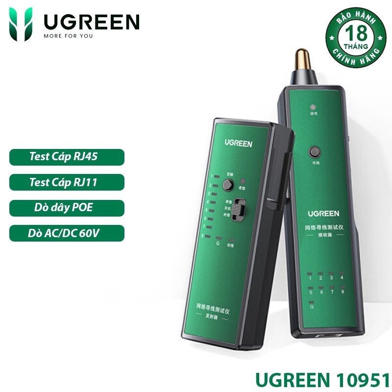 Máy test mạng, dò dây mạng RJ45, RJ11 UGREEN 10951 cao cấp hàng chính hãng