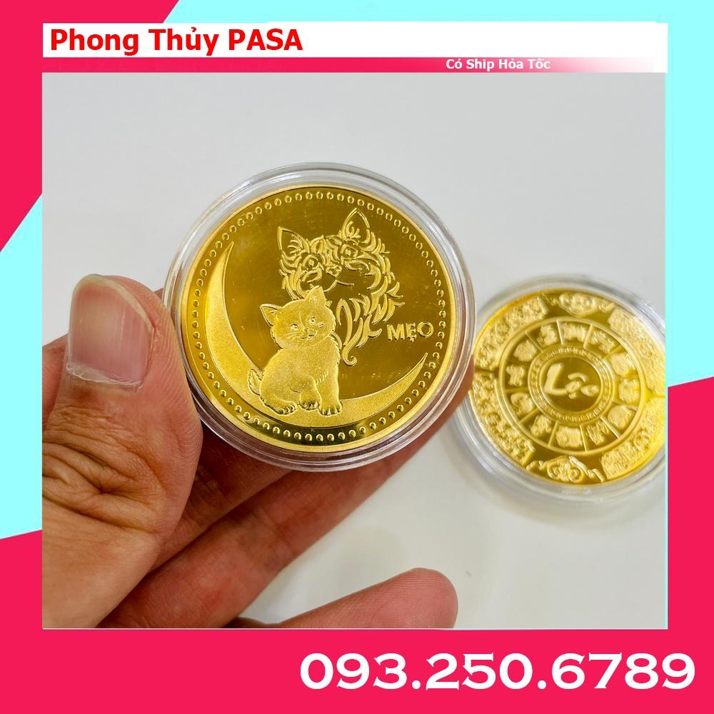 Móc Khóa Đồng Tiền Xu Con Mèo Mạ Vàng Quà tặng May Mắn Lì Xì Tết