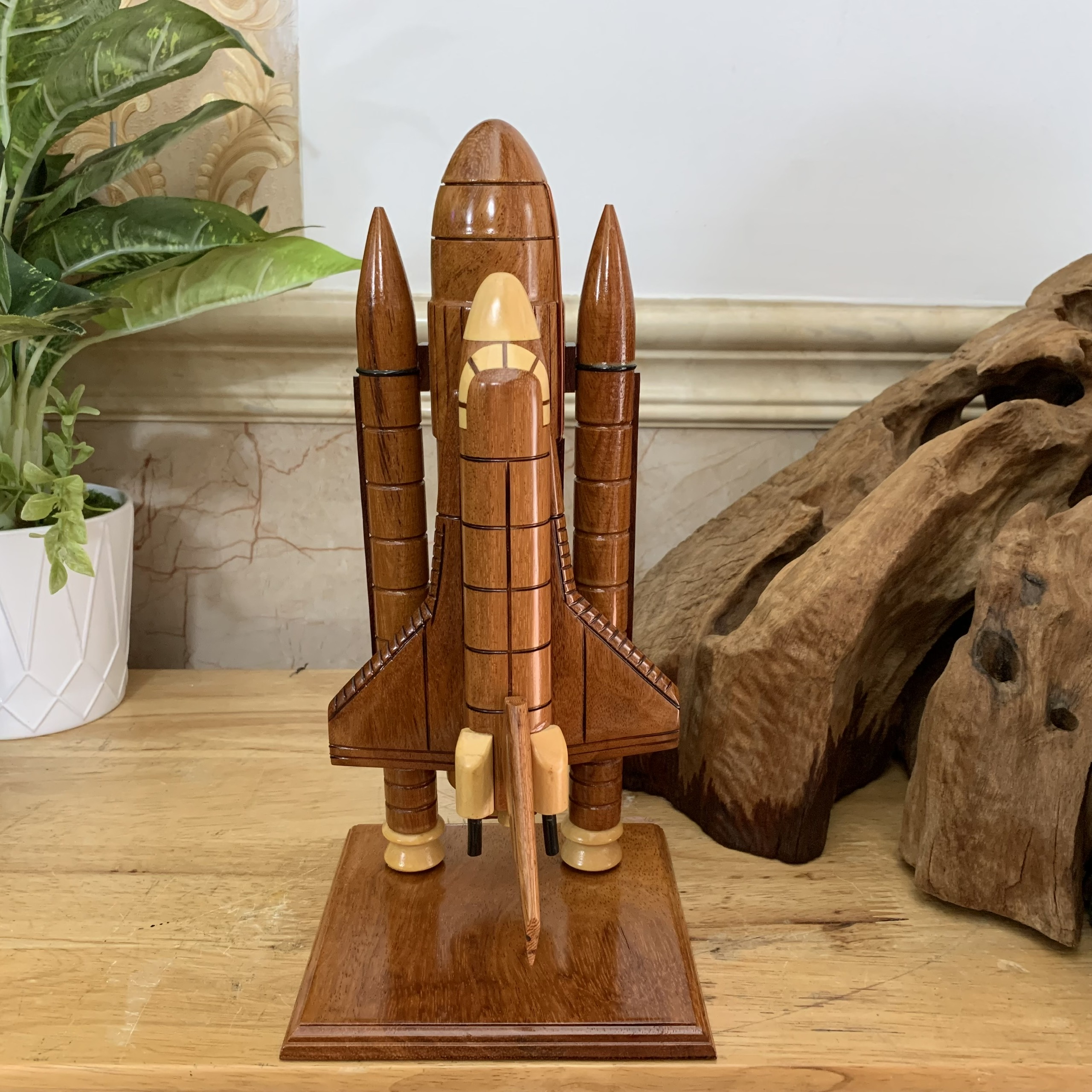 Mô hình gỗ trang trí phi thuyền Apollo trang trí gỗ tàu con thoi - Cao 30cm - Gỗ tự nhiên