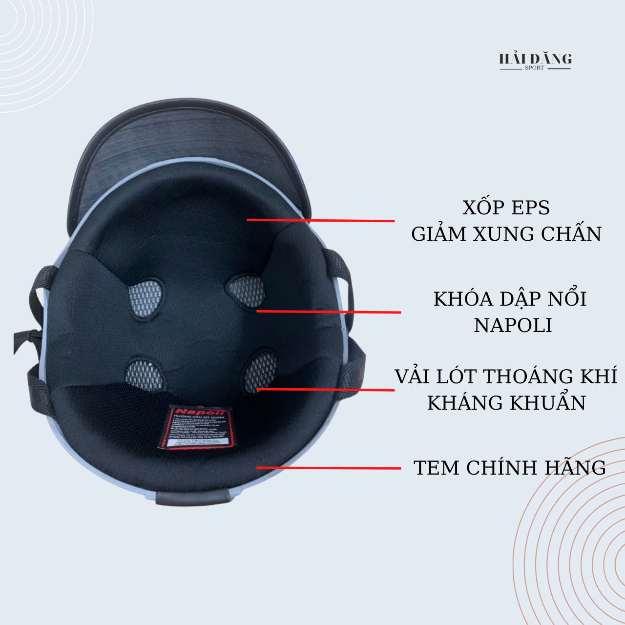 *** Mũ Bảo Hiểm 1/2 Đầu Napoli NS-N088 có kiểu dáng hiện đại, đẹp mắt. Vỏ ngoài được làm từ chất liệu nhựa ABS chuyên dùng, chịu lực và chịu va chạm tốt để bạn an tâm khi lưu thông trên đường. Bên tro...
