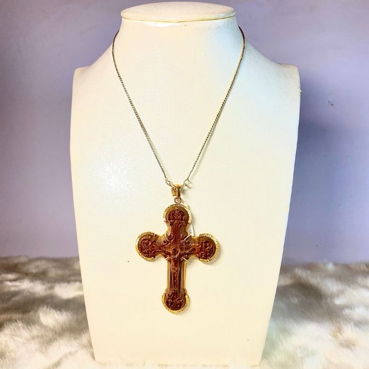 Mặt Dây Chuyền Gỗ Huỳnh Đàn Bọc Vàng 9p5 PHÚC LINH