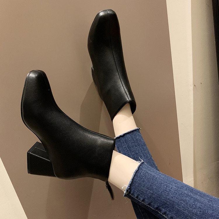 MS296 Bốt da nữ mũi vuông, boots cao cổ nữ