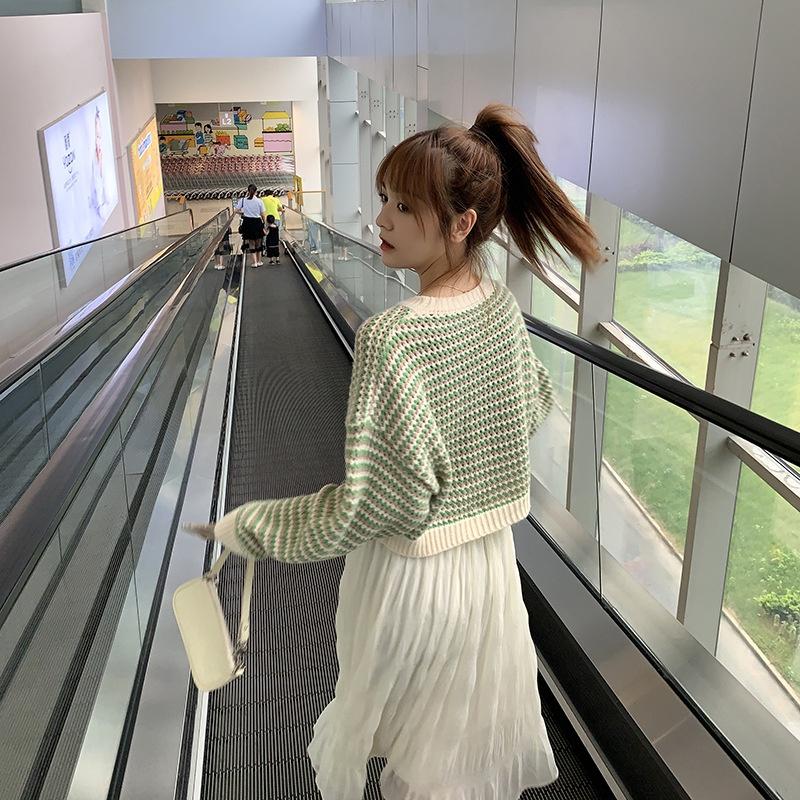 MS378 Áo len nữ kẻ ngang dáng ngắn phối màu trẻ trung