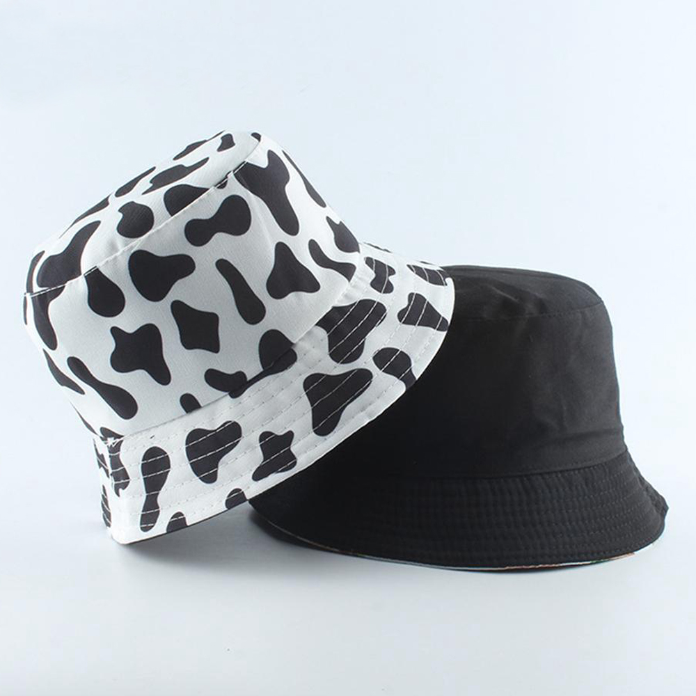 Nón bucket tai bèo bò sữa, đội được 2 mặt, 1 mặt đen trơn, 1 mặt họa tiết bò sữa - Hạnh Dương