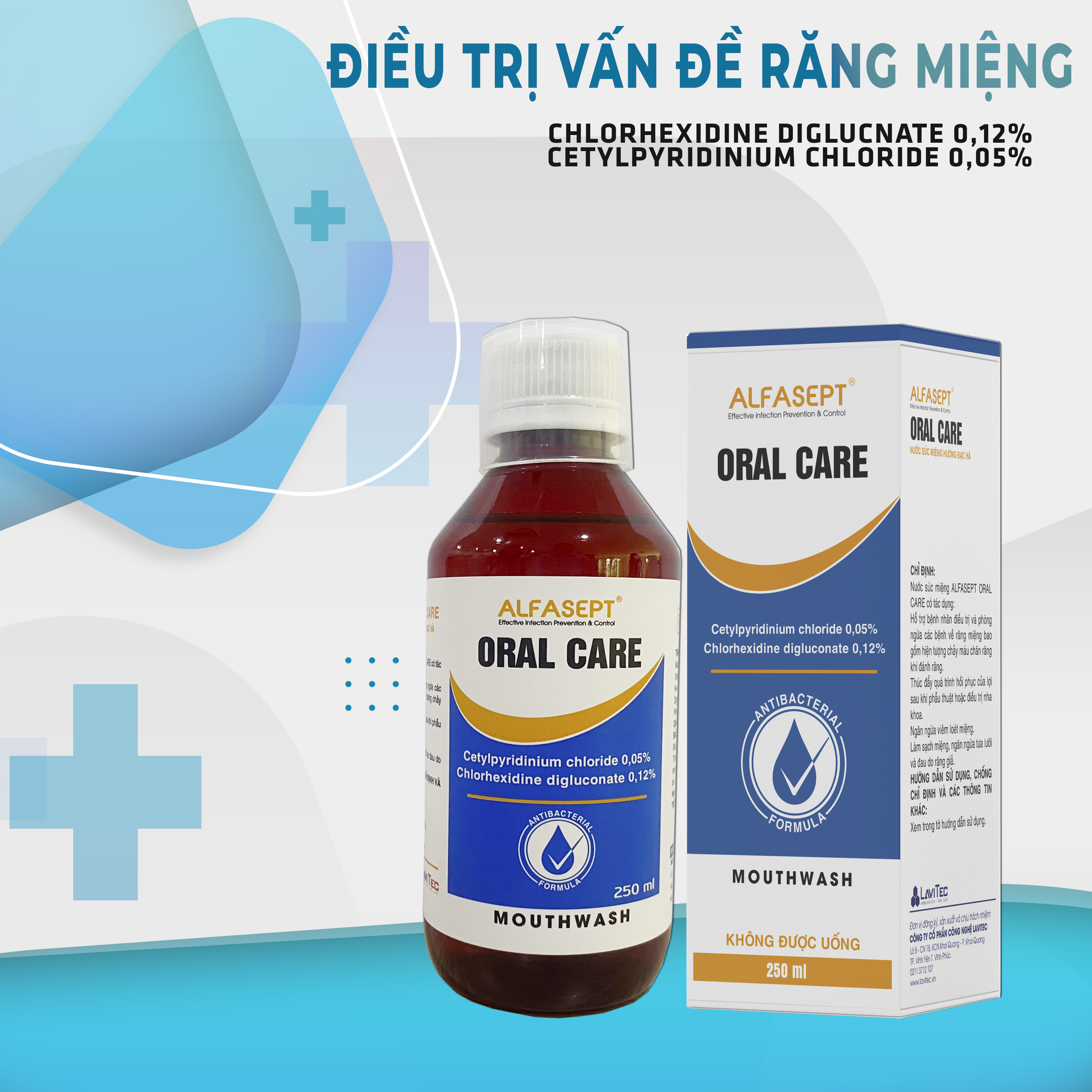 Nước súc miệng họng Alfasept Oral Care 250ml - Có chứa 0.12% là sản phẩm có tính sát khuẩn khoang miệng, giúp làm giảm vi khuẩn độc hại trong khoang miệng. Trong sản phẩm này, hàm lượng Chlorhexidine đạt 0,12%, đủ để sát khuẩn theo tiêu chuẩn của thế giới. ️Tác dụng: Hỗ trợ điều trị các bệnh và các kích thích ảnh hưởng đến nướu Giúp ngăn ngừa hôi miệng, ê buốt răng Ngăn ngừa mảng bám khi chỉnh nha Ngăn ngừa viê lợi và nha chu (cho các bệnh nhân biến đổi tình trạng giải phẫu) Giúp hơi thở thơm mát️ Cách dùng : Súc họng/ miệng trong khoảng 30 giây với 15ml, mỗi ngày 2 lần. Trong phẫu thuật răng, bệnh nhân cần được chỉ dẫn súc miệng với 15ml trong 1 phút trư.ớc khi điều trị.️Đối với trường hợp sử dụng răng giả: Rửa sạch và ngâm hàmrăng giả với sản phẩm trong 15 phút, 2 lần mỗi ngày. NƯỚC SÚC MIỆNG ALFASEPT ORAL CARE 0.12% CHG Tác dụng Diệt khuẩn vùng khoanh miệng Ngăn ngừa viê nướu, bệnh quanh răng Giúp hạn chế mảng bám Giúp hơi thở thơm mát Đối tượng sử dụng: Người bị viêm nướu, chảy máu chân răng, viê quanh răng, hôi miệng Người bị viêm vùng khoang miệng Người sau khi nhổ răng, tiểu phẫu trong miệng, phẫu thuật nha chu Người sau phẫu thuật, cấy ghép implant, phục hình răng sứ thẩm mỹ Cách sử dụng: Súc miệng khi thực hiện thủ thuật cấy ghép implant, lấy cao răng, nhổ răng, tiểu phẫu trong miệng Dùng duy trì 2-3 lần/ ngày Súc miệng 15ml trong 30 giây Giá sản phẩm trên Tiki đã bao gồm thuế theo luật hiện hành. Bên cạnh đó, tuỳ vào loại sản phẩm, hình thức và địa chỉ giao hàng mà có thể phát sinh thêm chi phí khác như phí vận chuyển, phụ phí hàng cồng kềnh, thuế nhập khẩu (đối với đơn hàng giao từ nước ngoài có giá trị trên 1 triệu đồng).....