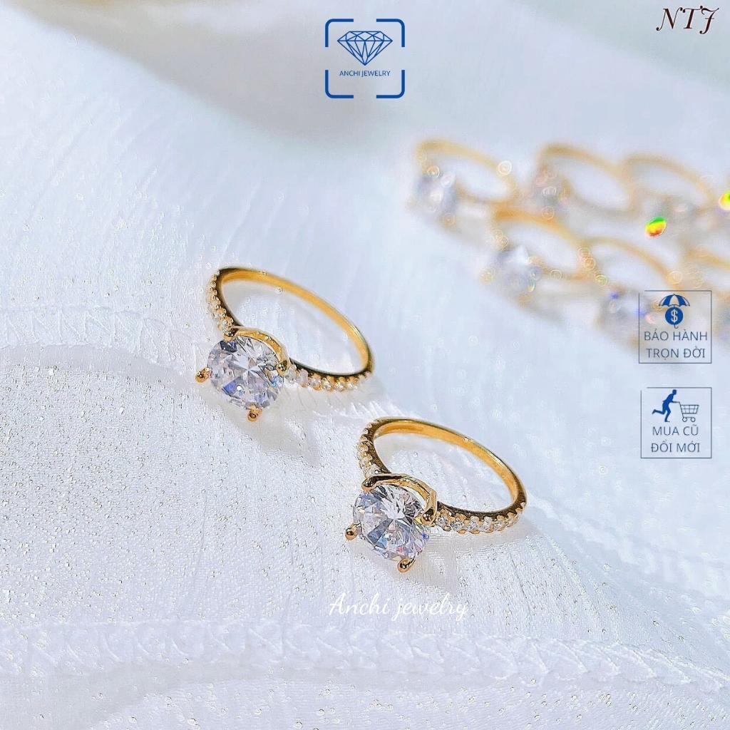 Nhẫn bạc 4 chấu cao gắn đá cubic mạ vàng giá rẻ cho nữ, Anchi Jewelry