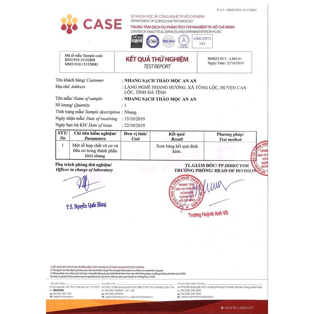 NHANG THẢO MỘC AN AN - NHANG XANH QUẾ SẠCH, 100% TỰ NHIÊN Từ trước đến nay quan niệm của hầu hết đa số mọi người khi chọn mua nhang luôn cho rằng, hương cuốn tàn giúp mang đến tài lộc cho gia chủ, người thắp; Chân nhang thì phải màu đỏ tượng trưng cho lộc và may mắn; Mùi hương phải thơm và thơm lâu. Tuy nhiên, việc thắp hương theo cách này chưa biết có mang lại tài lộc cho người thắp hay đem lại hiểm họa khó lường cho sức khỏe. Trong các loại nhang kể trên thường chứa các chất hóa học giúp nhang cuốn tán và tàn nhang có màu trắng rất đẹp, hương liệu giá rẻ không rõ nguồn gốc xuất xứ, chất gây cháy nhằm giúp nhang dễ bắt lửa và thuốc nhuộm màu công nghiệp dùng cho chân nhang. Theo bác sĩ Nguyễn Văn Đức, Trưởng Khoa Tai-Mũi-Họng Đại học Y dược TP HCM thì, do mùi hương từ nhang được tẩm từ hóa chất công nghiệp, nên khi đốt mỗi khi hít phải thường gây ra hắt hơi, cay mắt, khó thở.… VÌ SAO NHANG QUẾ AN AN ĐƯỢC MỆNH DANH NHANG SẠCH - Thành phần 100% từ TRẦM HƯƠNG TỰ NHIÊN, KEO BỜI LỜI, TĂM TRE - Nhang không cuốn tàn – chân mộc (không nhuộm) - Khi ngửi hoàn toàn không mùi - thắp lên mới nghe mùi - Mùi hương trầm dịu nhẹ giúp trang thờ ấm áp - Thắp được trong không gian kín: PHÒNG MÁY LẠNH - NHÀ CHUNG CƯ - Sản phẩm được kiểm định nghiêm ngặt của Sở Khoa Học - Công Nghệ trước khi đến tay người tiêu dùng - Thương hiệu NHANG UY TÍN được NÔNG NGHIỆP SẠCH -VTV1 lựa chọn - Tuyệt đối an toàn cho sức khỏe người dùng THÀNH PHẦN : Bột nhang: Làm từ lá khuynh diệp, quế, trầm hương Chất kết dính: cây Bời Lời ( vỏ và gỗ cây Bời Lời có chứa nhiều gluten được nghiền tạo thành chất kết dính) Tăm nhang: được tạo thành từ cây Tre thuần túy mang đậm chất Việt Kích thước nhang sạch: nhang có chiều dài 3 tấc (30cm) Số lượng nén nhang: 50 nén/ gói. Thời gian thắp: 45 phút LỢI ÍCH SẢN PHẨM : - Tốt cho người thiền định: hương thơm dịu nhẹ giúp người thiền định tập trung hơn, thư giãn hơn. - Ít khói" Nhang sạch An An QUẾ mang tính thiên nhiên không hóa chất nên không gây cay mắt, chảy lệ. - Phòng tránh cảm lạnh: Mùi hương của khuynh diệp có tính ấm nồng giúp hỗ trợ phòng tránh cảm lạnh, giảm nghẹt mũi. NHANG SẠCH QUẾ AN AN tự hào là thương hiệu uy tín : ︎ Được đài truyền hình VTV1 quay và phát sóng trên chương trình "Vì Một Tương Lai Xanh". ︎ Được Đài Phát Thanh Truyền Hình VTC quay phóng sự : "Góc Nhìn Người Tiêu Dùng". Giá sản phẩm trên Tiki đã bao gồm thuế theo luật hiện hành. Bên cạnh đó, tuỳ vào loại sản phẩm, hình thức và địa chỉ giao hàng mà có thể phát sinh thêm chi phí khác như phí vận chuyển, phụ phí hàng cồng kềnh, thuế nhập khẩu (đối với đơn hàng giao từ nước ngoài có giá trị trên 1 triệu đồng).....