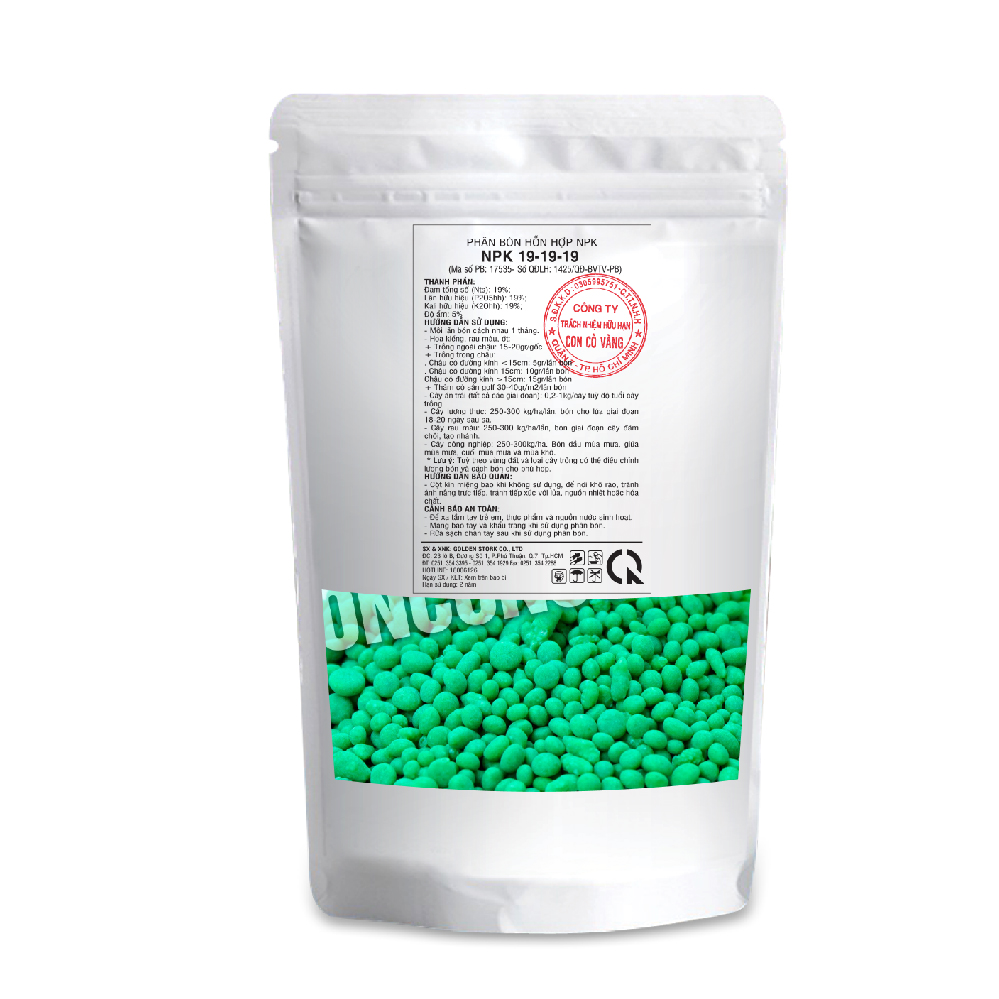 THÀNH PHẦN:Đạm tổng số (Nts): 19%Lân hữu hiệu (P2O5hh): 19%Kali hữu hiệu (K2Ohh): 19%Độ ẩm: 5%HƯỚNG DẪN SỬ DỤNG:Mỗi lần bón cách nhau 1 tháng.Hoa kiển, rau màu, ớt:+ Trồng ngoài chậu: 15-20gr/...