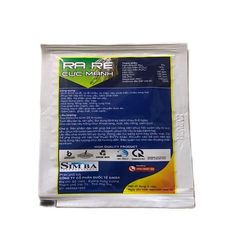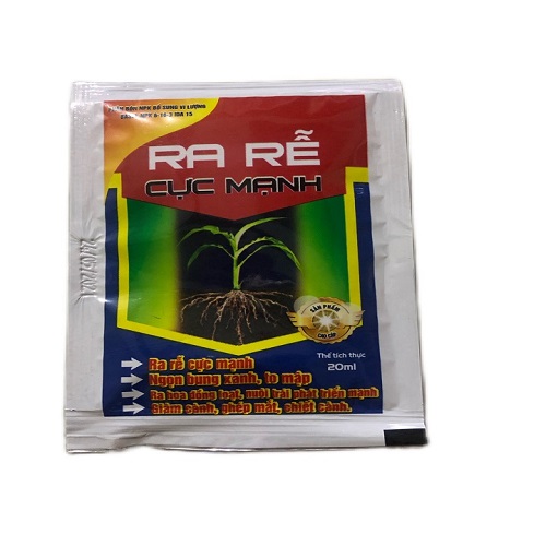 Phân bón ra rễ cực mạnh 20ml RA RỄ CỰC MẠNH, GIẢM CÀNH, GHÉP MẮT, CHIẾT CÀNH, NGỌN BUNG XANH, TO MẬP, RA HOA ĐỒNG LOẠT, NUÔI TRÁI PHÁT TRIỂN MẠNH. Thành phần: Đạm tổng số (N) 6%, lân hữu hiệu ( P2Ohh) 3%, kẽm (Zn) 150ppm, đồng (Cu) 140ppm, sắt (Fe) 130ppm, Maganese (Mn), Additives đặc biệt vừa đủ 100%. Công dụng: - Kích thích ra rễ, ra rễ nhiều, to mập, dày phát triển nhiều lông hút. - Phục hồi cây khi bị suy yếu, kém phát triển. - Gỉai độc, hạ phèn, giúp đất tơi xốp. - Ngọn bung xanh, dày mập. - Hoa bung đồng loạt, chống rụng hoa. - Trái phát triển mạnh, cân đối. - Thông mạnh dẫn giúp cây vận chuyển thức ăn. - Giarm cành, ghép mắt, chiết cành. Liều lượng: Pha 20ml cho bình 25 lít nước. Tưới đều tán lá, tán gốc. Sử dụng định kì cách nhau 6-8 ngày. Cho các loại cây trồng như khoai lang, xoài, sầu riêng, cam, quý Chú ý: Sản phẩm đặc biệt giúp bà con nông dân phục hồi vườn cây bị suy yếu, phục hồi vườn sau khi thu hoạch, phục hồi cây bị sâu bệnh hại. Lắc đều trước khi sử dụng, dùng vào sáng sớm hoặc chiều mát. Có thể pha chung với các loại bảo vệ thực vật khác.Giá sản phẩm trên Tiki đã bao gồm thuế theo luật hiện hành. Bên cạnh đó, tuỳ vào loại sản phẩm, hình thức và địa chỉ giao hàng mà có thể phát sinh thêm chi phí khác như phí vận chuyển, phụ phí hàng cồng kềnh, thuế nhập khẩu (đối với đơn hàng giao từ nước ngoài có giá trị trên 1 triệu đồng).....