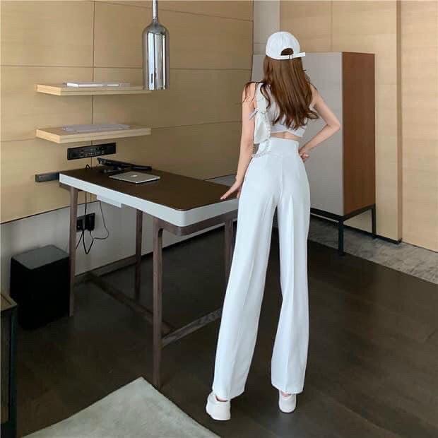 Quần ống rộng dài lưng cao đẹp 2 khuy khóa giữa dài 1m vải mềm Hàn Quốc Q888