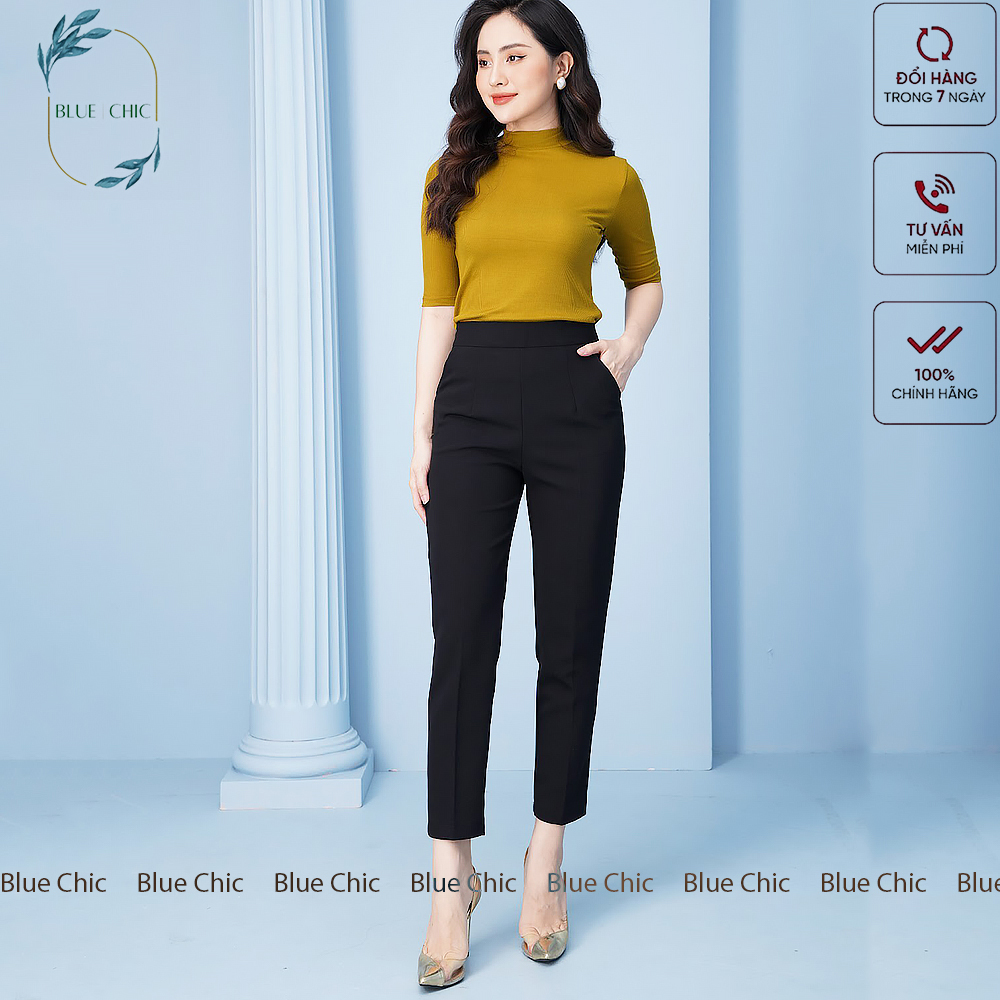 Quần baggy nữ Blue Chic cạp chun sau giấu bụng baggy vải công sở cạp cao dáng chuẩn thanh lịch màu đen