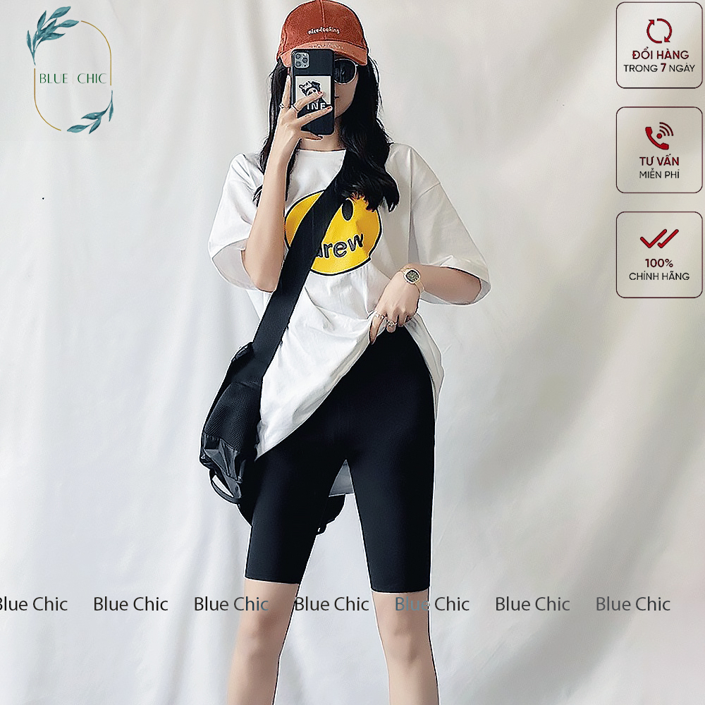 Quần legging nữ lửng Blue Chic vải thun cao cấp biker nữ đùi ngố đồ mặc nhà dáng ôm bó lưng thun tập gym yoga bigsize