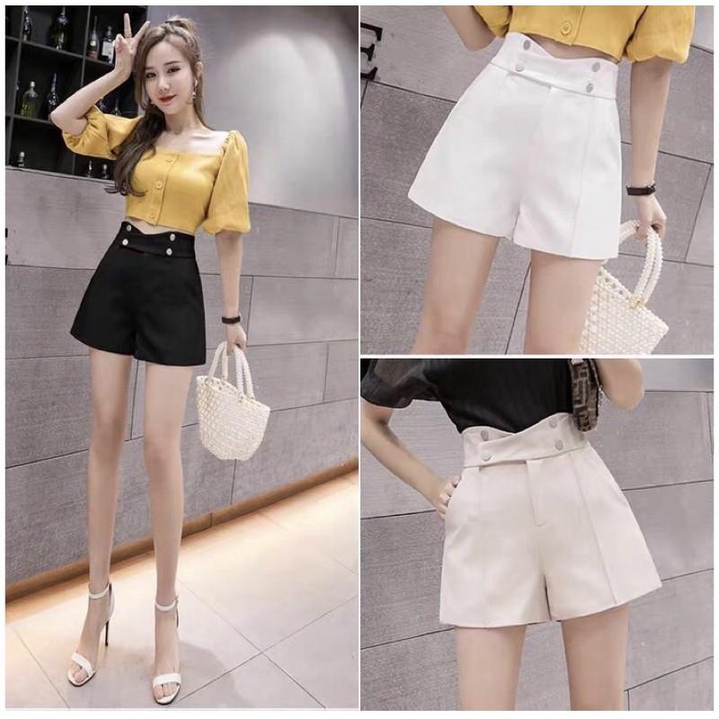 Quần short nữ cạp cao dáng đẹp Hàn Quốc 4 khuy khóa giữa Quần short nữ lưng cao 4 khuy Q037