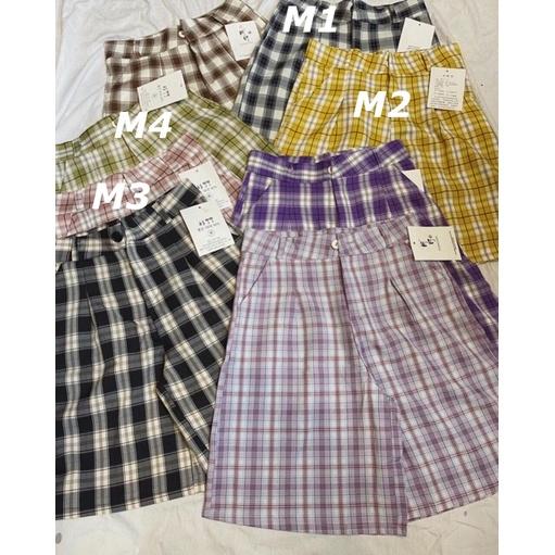 Quần short nữ lưng cao ống rộng DOLOXI kẻ caro cao cấp Q16