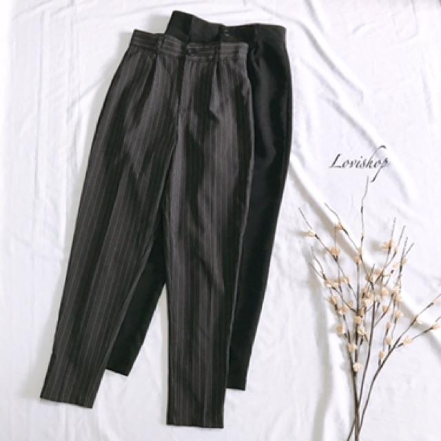 Quần tây nút Quần baggy nút lưng siêu cao 2 màu đen- sọc