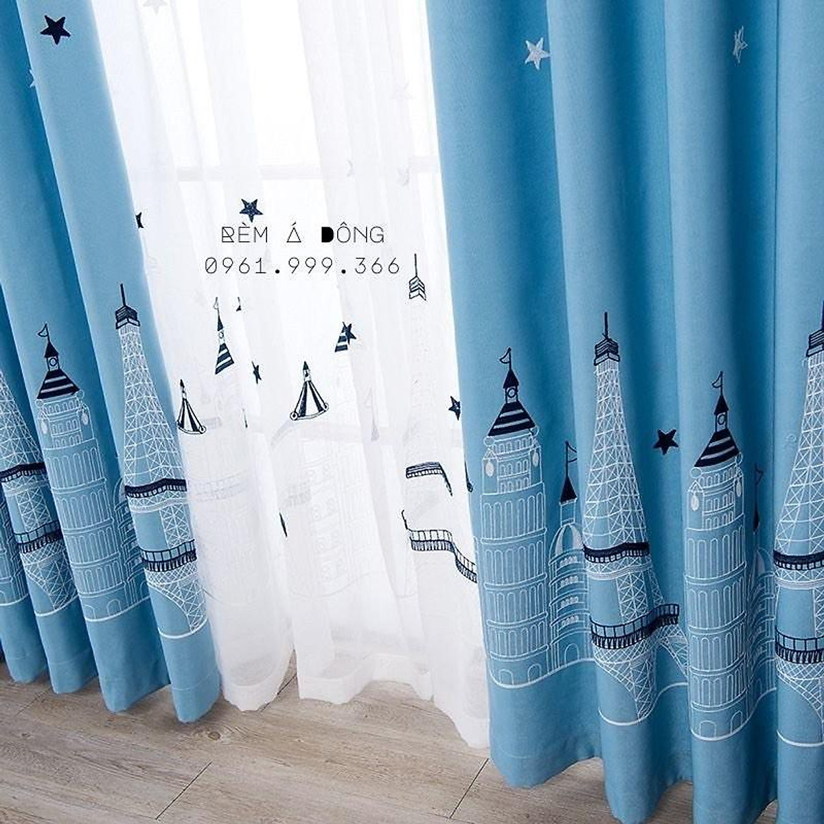 Rèm vải bé trai họa tiết tháp Eiffels ngộ nghĩnh - CÓ SẴN - Cao cố định 2.7m