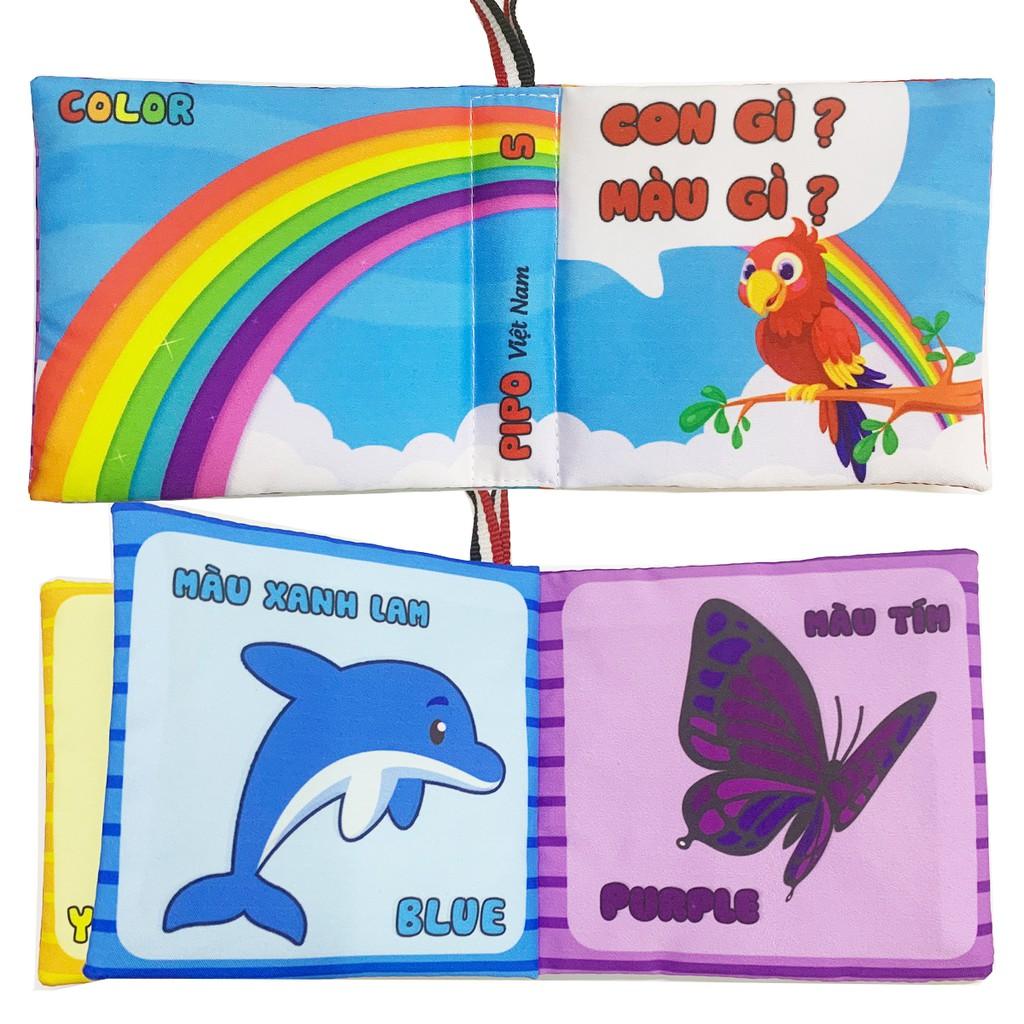 Sách vải cho bé PiPoVietnam kích thích thị giác - sách vải song ngữ Anh Việt - Con gì màu gì là cuốn sách giáo dục sớm cho bé các kiến thức đầu đời về nhận biết Đen Trắng - Màu sắc - Các con vật ...