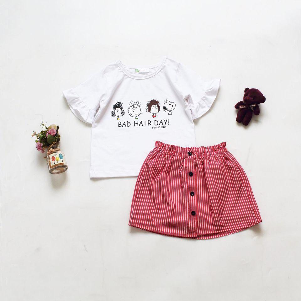 SÉT ÁO THUN BÉ GÁI IN HÌNH NGỘ NGHĨNH PHỐI VÁY SỌC