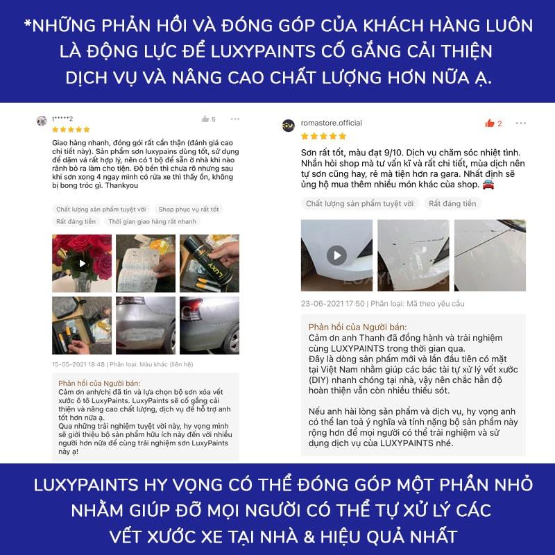 Sơn xóa vết xước xe ô tô Mitsubishi Grandis LUXYPAINTS, màu chuẩn theo Code dễ sử dụng độ bền cao - LP01MIGR Có phải bạn đang muốn tìm sản phẩm để tự dặm sơn xe oto, bút xoá vết xước ô tô tại nhà một cách nhanh gọn – hiệu quả, giá cả hợp lý và đặc biệt khi sơn xe xong, xe phải bóng đẹp như ban ban đầu? Hãy cùng tham khảo sản phẩm bút sơn tẩy vết xước xe ô tô, xe máy độc đáo tại đây nhé. CHỦ ĐỘNG DẶM VẾT XƯỚC, XOÁ VẾT XƯỚC OTO Ở BẤT KÌ MỌI NƠI Mỗi khi đem xe ra hãng, gara đều phải chờ đợi vất vả. Nhanh thì 1-2 ngày, chậm thì là 3-4 ngày, thậm chí là cả tuần mới xong. Điều này ảnh hưởng trực tiếp tới công việc, tiền bạc mà đáng ra ta nên sử dụng chúng cho việc khác sẽ đem lại hiệu quả hơn. Hiểu được nỗi đau này, vì thế chúng tôi đã nghiên cứu và đưa ra bộ sản phẩm sơn xóa vết xước ô tô có đầy đủ dụng cụ để xử lý theo từng dòng xe, không chỉ tiết kiệm thời gian mà còn tiết kiệm chi phí. NHANH CHÓNG VÀ DỄ SỬ DỤNG - Cách xử lý sơn ô tô bị trầy xước tại nhà như thế nào? Việc đó thật dễ dàng. Quý khách xem kĩ video và tờ hướng dẫn mà chúng tôi đã cung cấp là có thể tiến hành xử lý chúng rồi. - Sơn oto mất bao lâu? Chỉ từ 20-30p, các vết xước trên xe sẽ biến mất ngay lập tức, sơn bóng xe trở nên dễ dàng. _____________________________ CHỈ CẦN 2 BƯỚC CHÍNH SẼ XOÁ XƯỚC SƠN Ô TÔ DỄ DÀNG (nhắn cho shop để được hướng dẫn chi tiết): B1: XỬ LÝ BỀ MẶT - Xử lý sạch sẽ bề mặt vết xước; - Che chắn các vị trí nhạy cảm của xe. B2: TIẾN HÀNH SƠN XE Ô TÔ - Sau khi bề mặt đã được xử lý, ta tiến hành sơn màu cho xe - Lớp sơn màu đã đạt yêu cầu (mịn, khô) ta tiến hành sơn bóng và kết thúc. *Nếu trong quá trình sơn, bề mặt xuất hiện các hạt li ti do có bụi từ không khí. Đừng lo lắng, hãy đợi sơn khô rồi dùng nhám P2000 + nước đánh nhẹ đi là sẽ mịn và đẹp HSD: 36 tháng *Sản phẩm không phải là kem xóa vết xước ô tô, cana xoá vết xước. Đây là sơn màu ô tô, vì vậy cần đọc kĩ HDSD trước khi dùng bút xoá xước sơnxeoto.Giá sản phẩm trên Tiki đã bao gồm thuế theo luật hiện hành. Bên cạnh đó, tuỳ vào loại sản phẩm, hình thức và địa chỉ giao hàng mà có thể phát sinh thêm chi phí khác như phí vận chuyển, phụ phí hàng cồng kềnh, thuế nhập khẩu (đối với đơn hàng giao từ nước ngoài có giá trị trên 1 triệu đồng).....