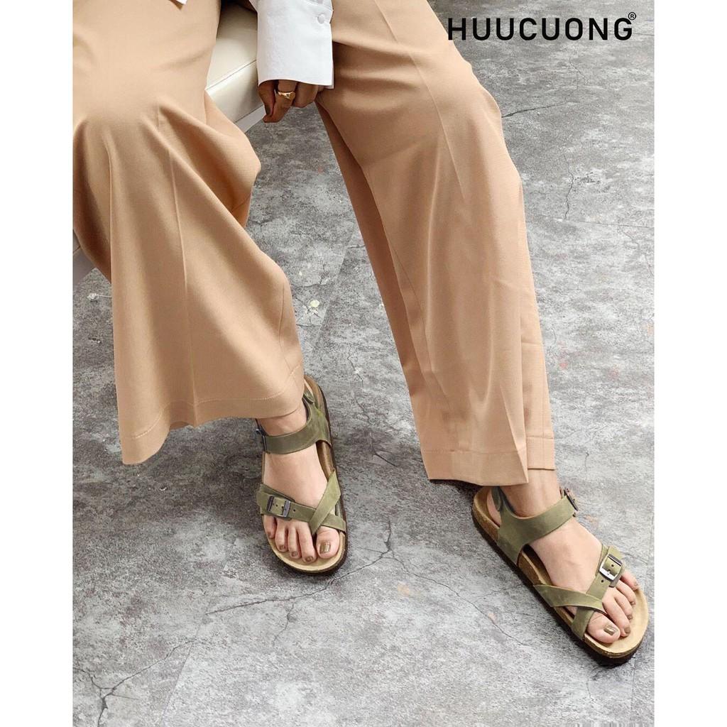 Sandal Unisex HuuCuong xỏ ngón Da Bò rêu đế trấu handmade