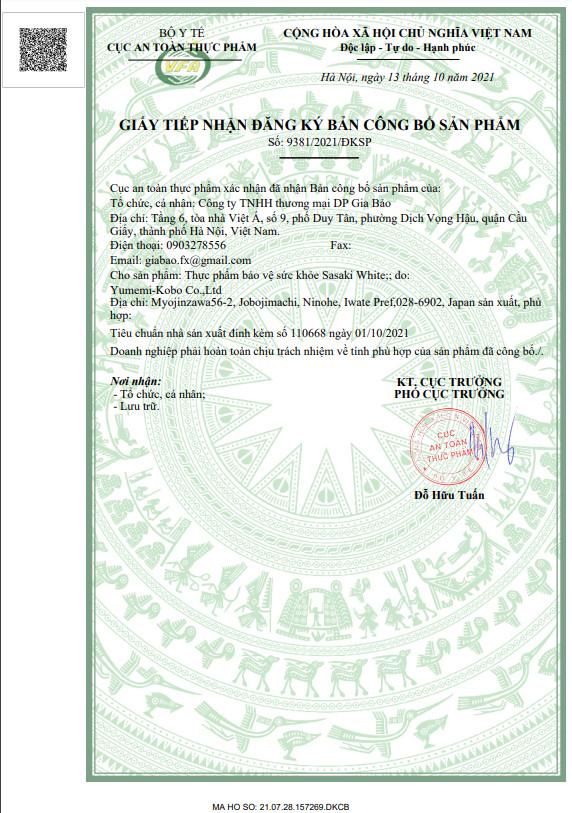 Thành Phần Sasaki White:Trong 4 viên:- Glutathione :- Chiết xuất hoa anh thảo:- Cerepron F:- Chiết xuất hoa anh đào:- Chiết xuất hạt nho:Và một số thành phần khác Công dụng: - Hỗ trợ giẫm các nếp nhăn, vết nám, tàn nhang. - Làm đẹp da mang lại làn da mịn màng và tươi sáng tự nhiên. - Bảo vệ da khỏi tia UV giúp da hạn chế tác hại của tia UV - Bảo vệ da và ngăn chặn quá trình oxy hóa của dã - Chăm sóc da chống lão hóa - Giảm mùi mồ hôi, tạo mùi hương cơ thể Đối tượng sử dụng: Cho cả phụ nữ và nam giới Cách dùng: + Sử dụng 2 viên/ngày. + Sử dụng 4 viên/ngày với đối tượng mong muốn trắng da nhanh, người ra nhiều mồ hôi có mùi và hay tiếp xúc với ánh nắng để đạt hiệu quả cao nhất Chống nắng uống trước khi ra nắng 30 phút và nên uống lúc đói Chuyên gia Nhật Bản khuyến khích nên uống 2 hộp đầu tiên 4v/ ngày để thấy kết quả rõ ràng sau đó dùng liều duy tri 2v/ ngày để có một làn da đẹp như mong muốn. Sản phẩm không phải là thuốc và không có tác dụng thay thế thuốc chữa bệnhGiá sản phẩm trên Tiki đã bao gồm thuế theo luật hiện hành. Bên cạnh đó, tuỳ vào loại sản phẩm, hình thức và địa chỉ giao hàng mà có thể phát sinh thêm chi phí khác như phí vận chuyển, phụ phí hàng cồng kềnh, thuế nhập khẩu (đối với đơn hàng giao từ nước ngoài có giá trị trên 1 triệu đồng).....