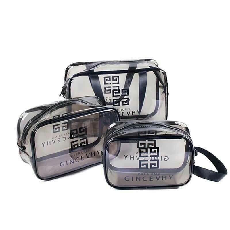 SET 3 TÚI ĐỰNG MỸ PHẨM Set 3 túi trong suốt đựng mỹ phẩm bằng nhựa đa năng, tiện dụng, đựng đồ, mỹ phẩm du lịch thời trang, chống thấm nước nhất là trong mùa mưa hoặc đi du lịch biển càn...