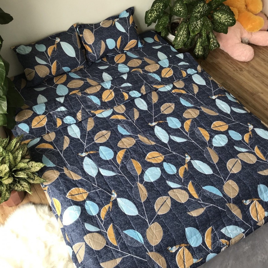 Set 5 món chăn hè ga chun Cotton Poly - Lá Đen - Tặng kèm 1 móc khóa Houston