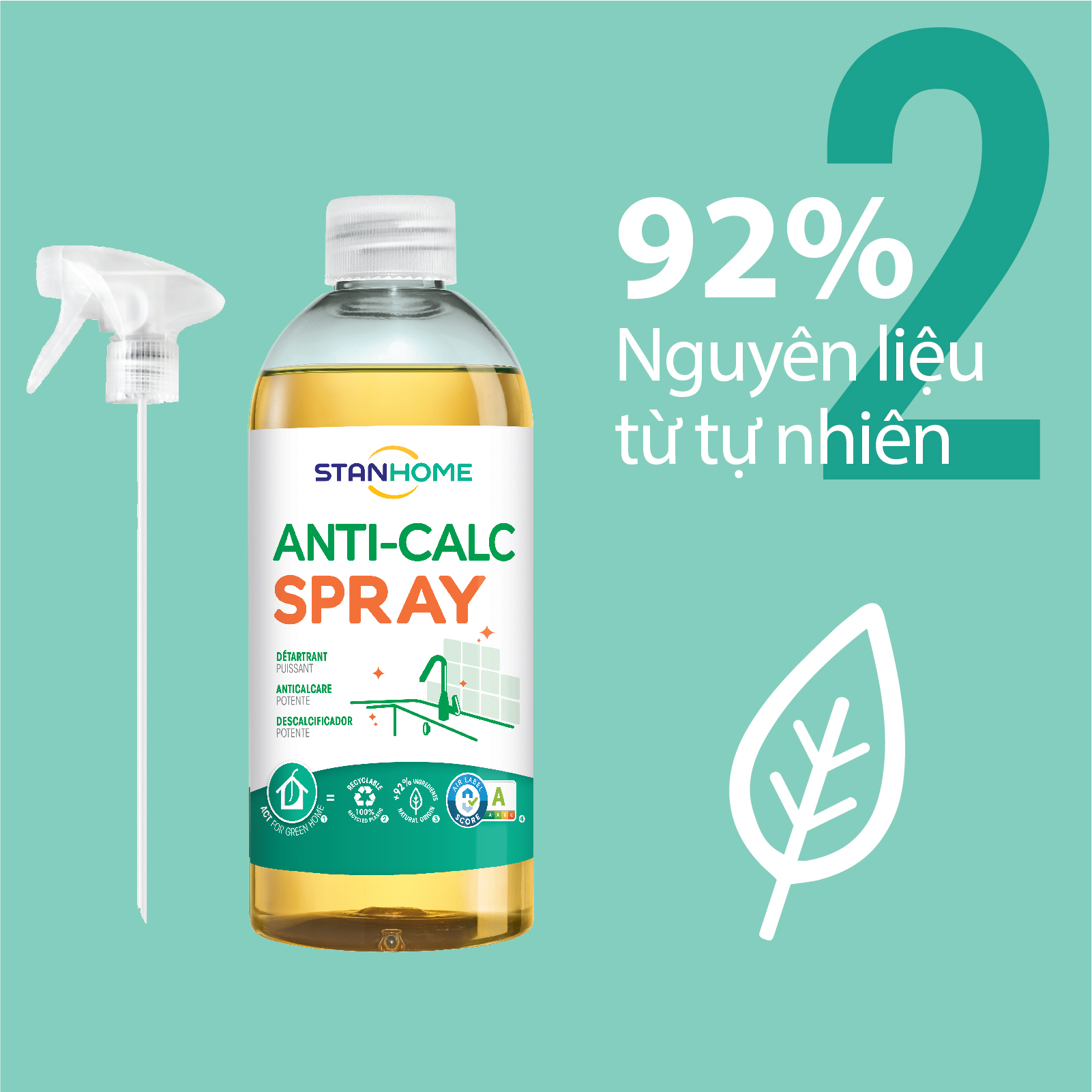 Siêu tẩy cặn canxi nước cứng cho mọi bề mặt và thiết bị trong nhà Anti Calc Stanhome tiêu chuẩn Air Label Ccore 500ml