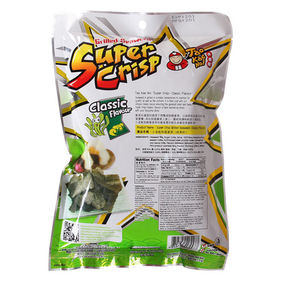 Rong biển là một loại thực phẩm tuyệt vời mà người Nhật từ xa xưa gọi là “loại rau nước quý báu” hay “nguồn hạnh phúc của biển cả”. Do đó,trong những bữa ăn của người Nhật rất hay có xuất hiện thành phần rong biển, giúp bổ sung thêm dưỡng chất cho cơ thể. Snack rong biển Tao kae Noi Super Crisp vị Truyền thống 24g Sheet vị Cay dưới đây mang đến cho bé một món ăn vặt thú vị, vừa bổ sung dưỡng chất, lại vô cùng ngon miệng. Sản phẩm được làm từ nguồn nguyên liệu rong biển sạch, tự nhiên, không chứa hóa chất độc hại, an toàn cho sức khỏe của bé. Mẹ có thể dùng làm bữa ăn phụ để bé nhâm nhi cùng bạn bè hoặc thêm vào bữa ăn chính cho bé.- Thành phần nguyên liệu: Tảo biển (85%), dầu cọ (9%), muối (3.5%), tiêu (2%), hương vị (0,5%)- Thông tin dinh dưỡng của sản phẩmo Năng lượng: 15 kcalo Hàm lượng Cacbonhydrat : 0.6go Hàm lượng Protein: 0.8go Hàm lượng chất béo tổng : 1go Hàm lượng Sodium (Na): 15mg- Bảo quản Để nơi khô ráo, thoáng mát, tránh ánh sáng mặt trời.- Hướng dẫn sử dụngĂn trực tiếp. Có thể dùng làm bữa phụ hay ăn thêm vào bữa chính, ăn cùng với cơm, bánh mì, súp. Giá sản phẩm trên Tiki đã bao gồm thuế theo luật hiện hành. Bên cạnh đó, tuỳ vào loại sản phẩm, hình thức và địa chỉ giao hàng mà có thể phát sinh thêm chi phí khác như phí vận chuyển, phụ phí hàng cồng kềnh, thuế nhập khẩu (đối với đơn hàng giao từ nước ngoài có giá trị trên 1 triệu đồng).....