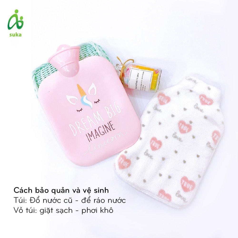 Túi chườm hạ sốt, túi chườm giảm đau bụng kinh, túi chườm giữ ấm 900ml SK Túi chườm đa năng giúp chườm nóng lạnh, túi chườm hạ sốt, túi chườm giảm đau bụng kinh, túi chườm giữ ấm dung tích 900ml Túi chườm đa năng có thể chườm được cả nóng và lạnh dùng được trong rất nhiều trường hợp. Kích thước nhỏ gọn, rất tiện dụng có thể dùng mọi lúc, mọi nơi, dễ dàng mang theo người trong những chuyến đi xa. "Túi chườm đa năng không sử dụng điện nên rất an toàn cho người sử dụng - Không lo chập cháy - Chất liệu silicon an toàn có nhung bọc bên ngoài - Giữ nhiệt thời gian dài - Đổ nước lạnh hoặc nước ấm nóng, đậy nắp và sử dụng. Vô cùng tiện lợi - Sử dụng chườm giữ ấm, chườm sốt, chườm bụng ngày đèn đỏ," * CHÚ Ý: "- Không đặt túi chườm trực tiếp lên da - Lót một khăn mỏng rồi mới đặt túi chườm lên - Nếu phủ lên túi chườm một lớp khăn lông sẽ giúp túi chườm giữ nhiệt lâu hơn. - Đặt lớp nỉ tiếp xúc với cơ thể bạn trước, sau 5- 10 phút thì lật lại ( vì túi chườm sẽ nóng mà lớp nỉ sẽ cách nhiệt tốt hơn vải nên giúp bạn tránh trường hợp nóng quá, sau khi túi chườm giảm nhiệt thì lật lại để mặt nỉ phía trên giúp túi chườm giữ nhiệt lâu hơn." * SHOP CAM KẾT: - Sản phẩm giống mô tả và hình ảnh - Đảm bảo chất lượng 100% - Sản phẩm được kiểm tra kĩ càng, cẩn thận và tư vấn nhiệt tình trước khi gói hàng giao cho Quý Khách - Hàng có sẵn, giao hàng ngay khi nhận được đơn Giá sản phẩm trên Tiki đã bao gồm thuế theo luật hiện hành. Bên cạnh đó, tuỳ vào loại sản phẩm, hình thức và địa chỉ giao hàng mà có thể phát sinh thêm chi phí khác như phí vận chuyển, phụ phí hàng cồng kềnh, thuế nhập khẩu (đối với đơn hàng giao từ nước ngoài có giá trị trên 1 triệu đồng).....Sản phẩm này là tài sản cá nhân được bán bởi Nhà Bán Hàng Cá Nhân và không thuộc đối tượng phải chịu thuế GTGT. Do đó hoá đơn VAT không được cung cấp trong trường hợp này.