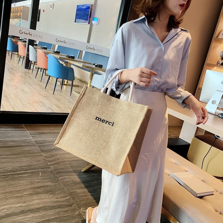 Túi sách tay có quai sách cối, đi biển, đi làm, đi chơi.In chữ MerciChất liệu: 2 lớp bên ngoài cối, bên trong vải.Mô tả: bên trong có ngăn nhỏ để đựng đồ quan trọng túi ví có dây kéo kéo lạiTúi sách c...