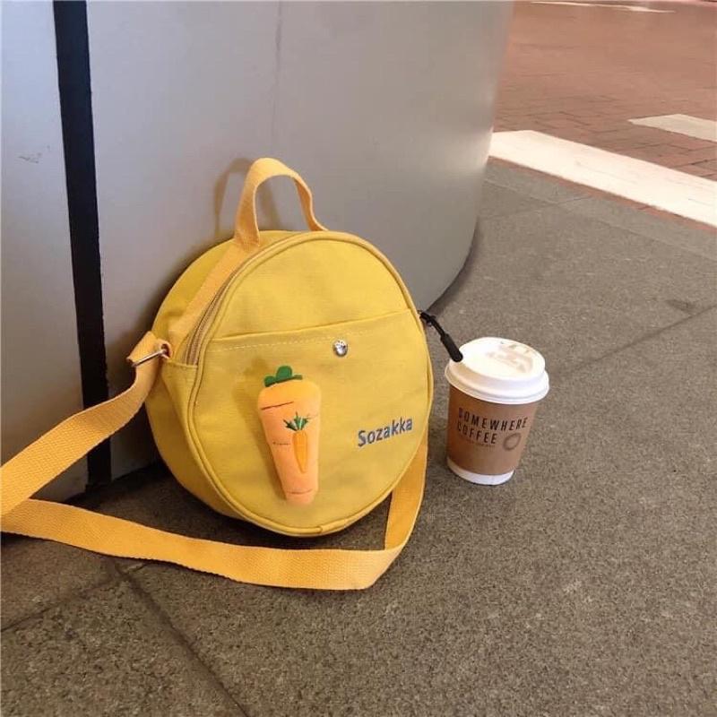 Hôm nay em bận yêu đời Hẹn anh hôm khác chúng mình yêu nhau Một chiếc cà rốt đáng iu thật sự, gam màu nào cũng xinh TÚI TRÒN SOZAKKA Chaats Cotton Canvas 21*21*6cm Đen, T...